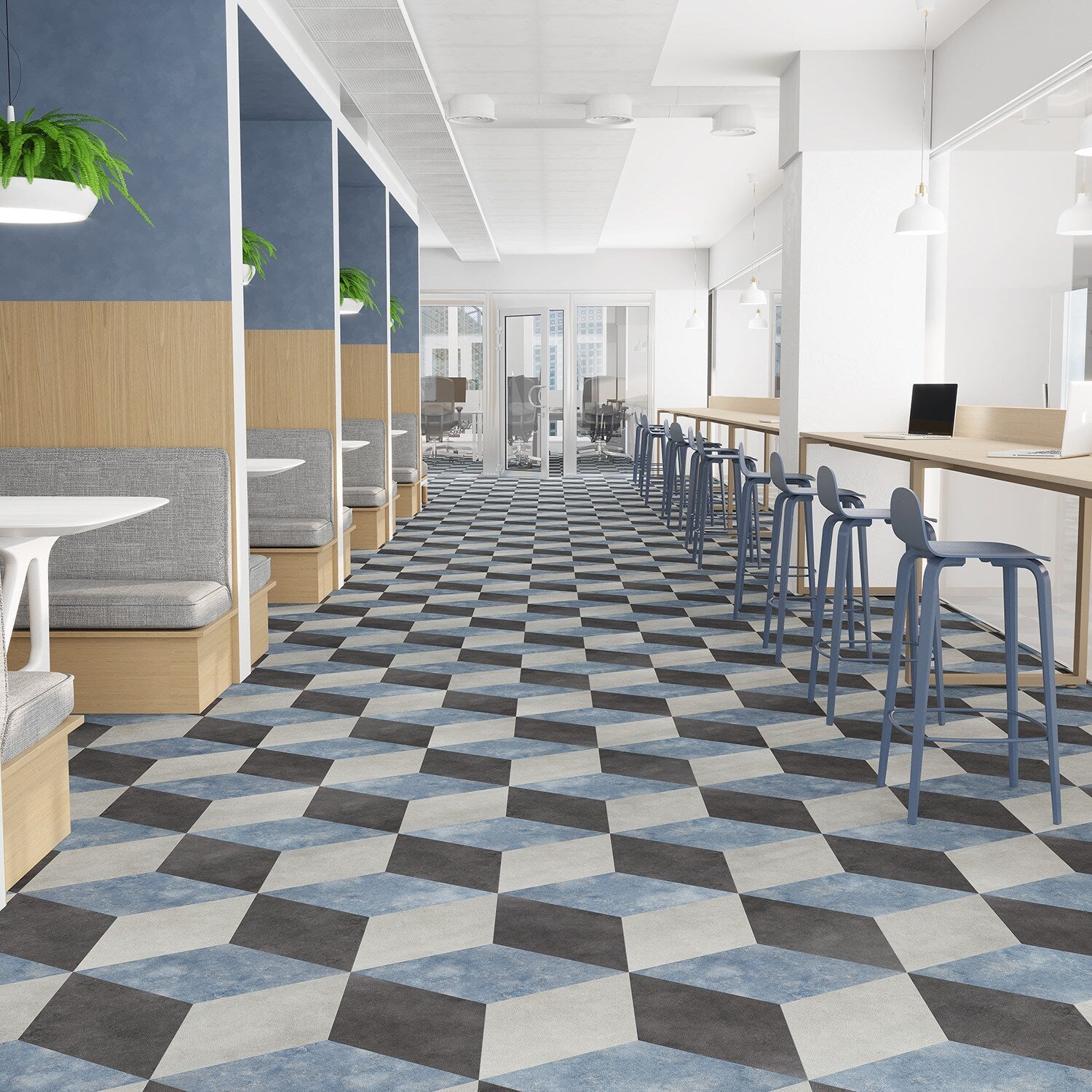 Lucida USA's Moody Sky Blue vinyl tiles evoke the serene beauty of natural stone, offering an elegant touch to both modern and traditional interiors. The standout feature is its luxurious blue stone aesthetic, crafted to mimic the organic allure of nature itself. Imagine a chic kitchen or a tranquil bathroom adorned with these tiles, each adding a sophisticated layer of design depth. Truly, this vinyl tile is essential for any homeowner or designer looking to infuse a space with classic elegance and superior functionality.