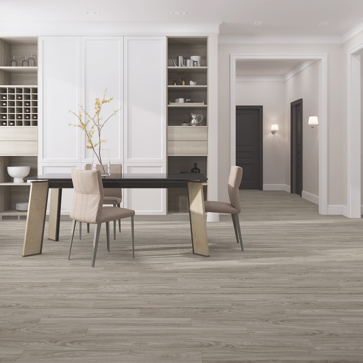 Transform any room into a masterpiece with Lucida's Snowcap Gray Vinyl Plank Flooring. Its rustic wood-look captures natural beauty, offering a stunning visual that breathes elegance into your design. The subtle shades of gray allow for versatile styling, ideal for both contemporary and classic decors. Pair it with sleek furniture and warm accents to create a harmonious living space. This flooring isn’t just a product—it’s a lifestyle statement, ensuring your interiors remain luxurious yet enduring.