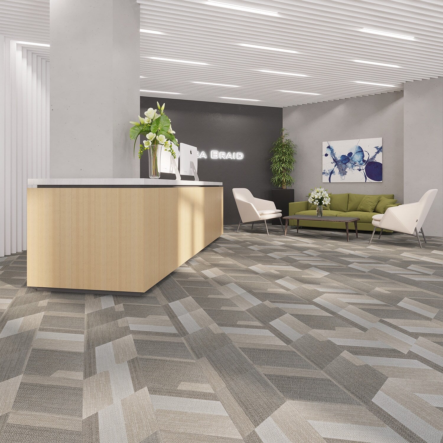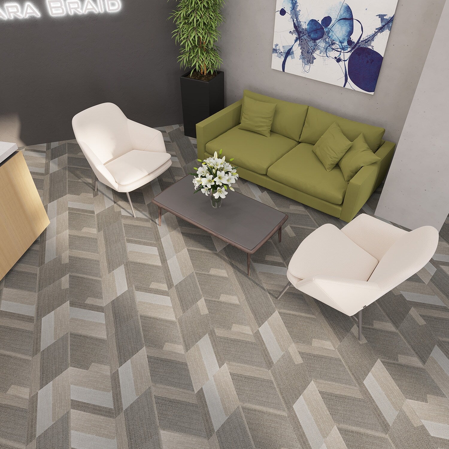 Transform any space with the elegant design and durability of MosaiCore's Sahara Braid Gray luxury vinyl tile (LVT) flooring. Made to withstand heavy commercial traffic, it features a sophisticated patterned look and advanced waterproof technology, making it perfect for both high-end residential and commercial applications.
