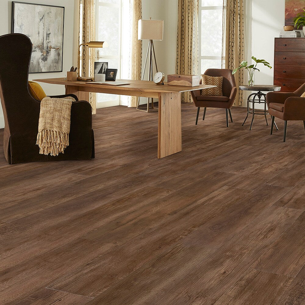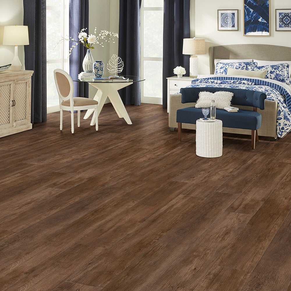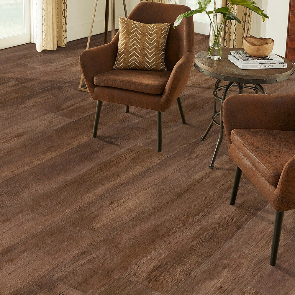 The Marsala Oak luxury vinyl plank flooring is a stunning addition to any interior, enveloping your home in warmth with its rich, red-brown oak finish that mimics the natural beauty of aged wood. Its wide, long planks create an expansive visual effect that enhances any room's grandeur. Whether styling a modern bathroom or a cozy kitchen, let these planks be the foundation of your design vision, effortlessly marrying substance and style. Truly, a luxe transformation awaits your floors — where function meets form in a most elegant embrace.