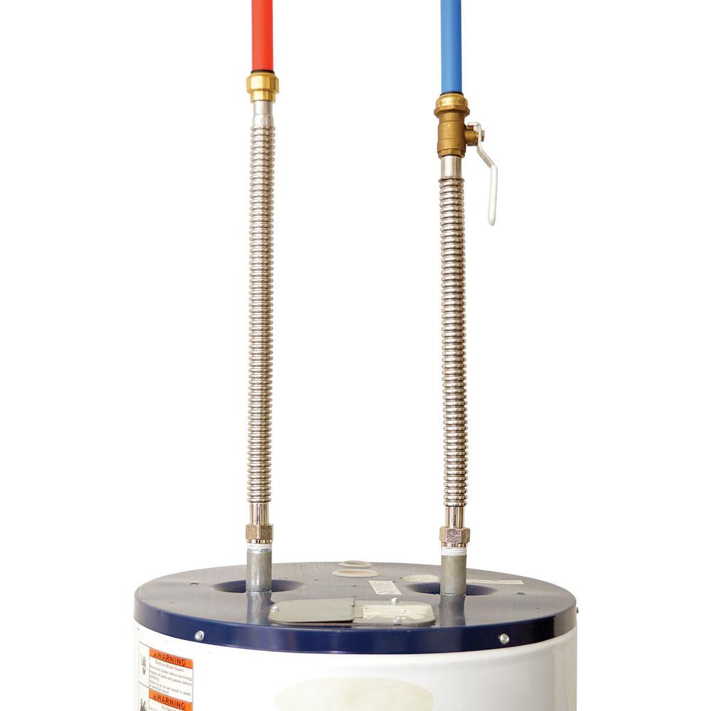 The Tectite by Apollo Water Heater Connection Kit is the fastest and simplest way to provide water to and from your water heater. With the inclusion of a high-strength, anti-kink corrugated stainless steel (CSST) water heater connector with an integrated ball valve for the cold water supply, another CSST connector without the ball valve for the outbound hot water supply and a 3/4 in. Allowing a maximum work pressure of 200 psi and maximum temperature of 250°. Tectite by Apollo disconnect clip, this kit is designed to ensure a stress-free installation in mere minutes.