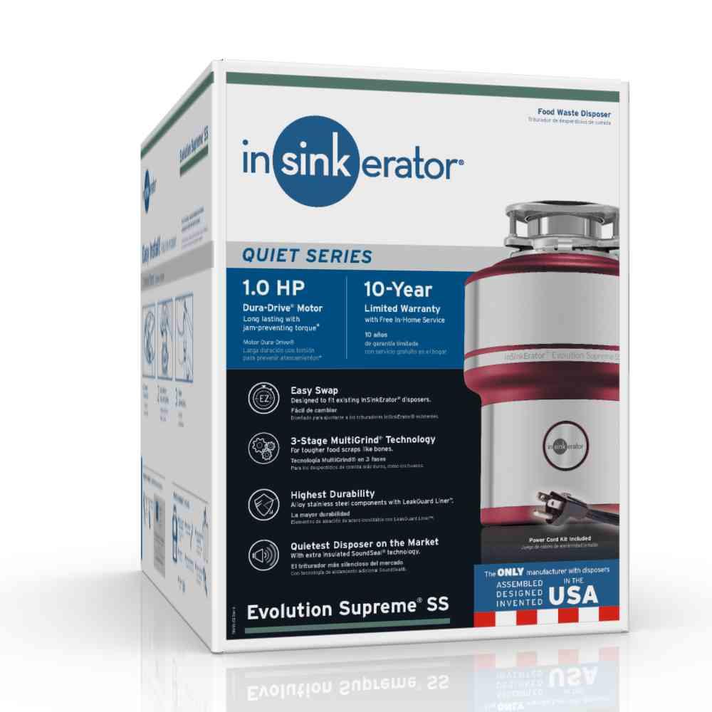 InSinkErator Evolution Supreme SS Stainless Steel 1 HP Continuous Feed Garbage Disposal with Power Cord Kit Included