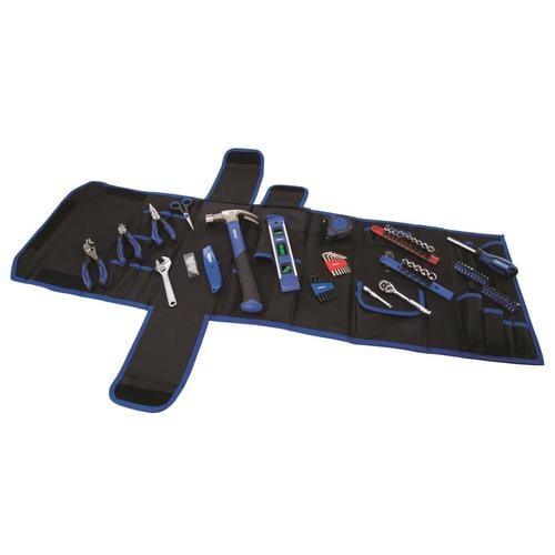 This handy all-purpose set comes in a durable nylon case with leather bottom in which tools are held in place with the help of specific pockets and clips for each tool that measures 7.5-in H x 16-in W x 6.5-in D when closed and weighs 9 pounds