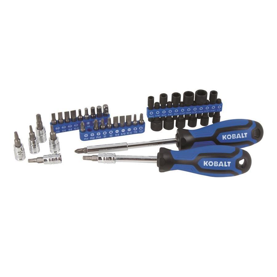 Also included are extensions and drive adapters, a breaker bar, two driver handles and hex keys, nut drivers, insert bits and two spark plug sockets
