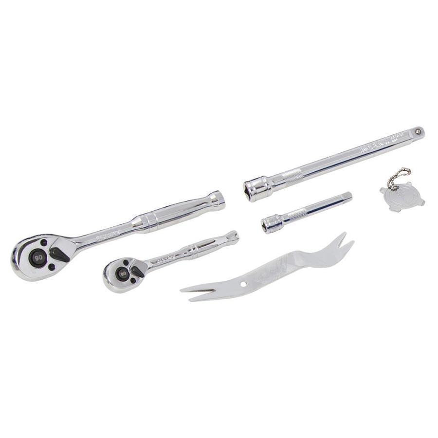 Our Pro90 ratchet has a 90-tooth gear that delivers a 4 ° arc swing and offers improved mobility in tight spaces Stored in a 4-drawer blow-molded tool chest for easy storage and transportation Sockets and wrenches are constructed from chrome vanadium steel and heat treated for strength and durability Professional grade, high-polish finish makes cleaning your tools a snap Tri-lobal screwdriver handle is ergonomically designed to provide a high level of confidence during high torque applications, giving you solid grip and comfort Sockets and wrenches have a color coded stripe and clear size callouts, making it easy to identify metric and SAE sizes with a quick glance Additional tools include a 6-inch extension and 3/8-inch drive universal joint adapter Meets or exceeds ASME specifications Hassle-free lifetime guarantee