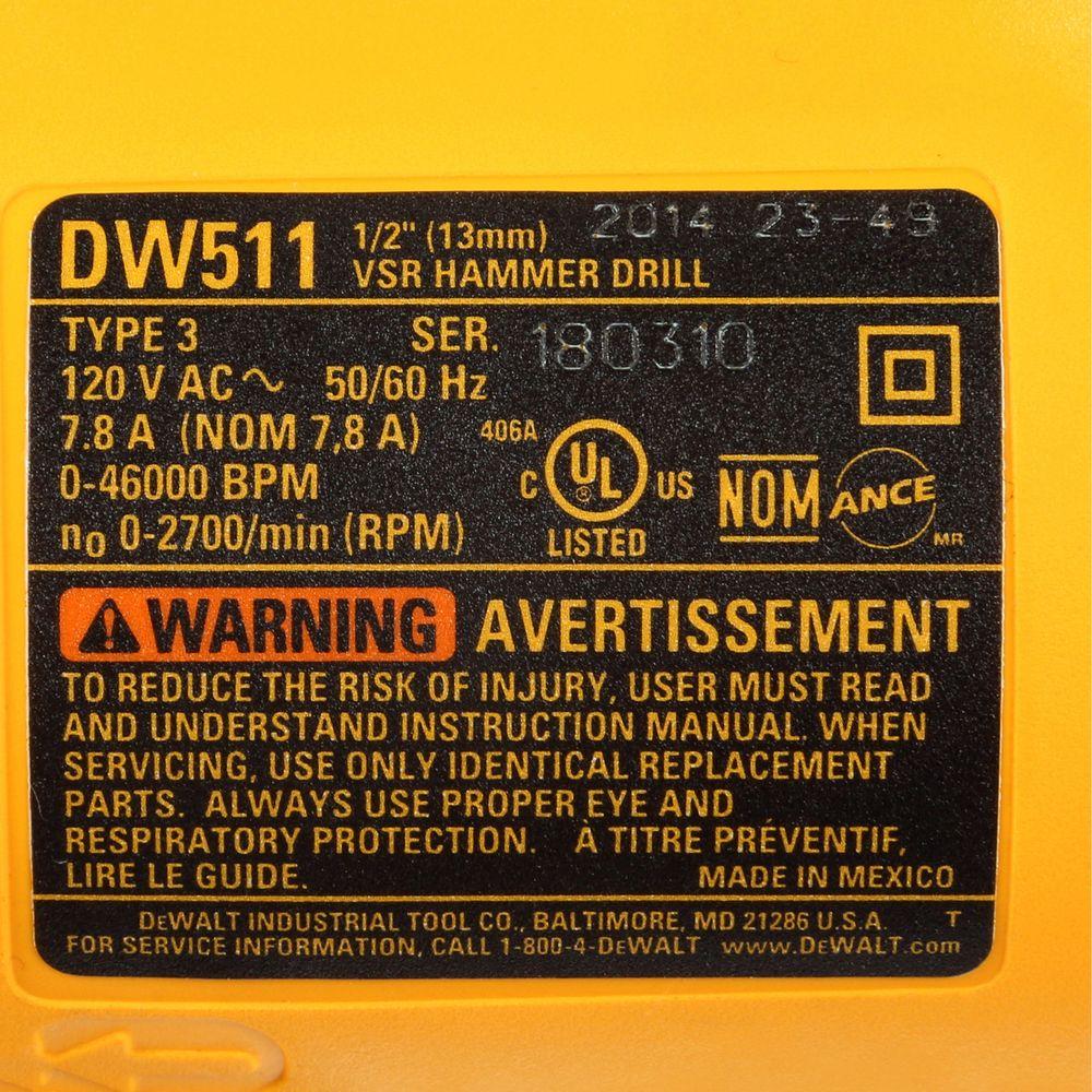 The DEWALT 1/2 in. Variable Speed Reversible Hammer Drill features a high-performance 7.8 Amp motor that provides overload protection. This dual-mode hammer drill is ideal for wood, steel and masonry applications and offers a 360 Degree side handle with depth rod to help deliver great control, versatility and depth accuracy. This hammer drill has a lightweight design to help limit user fatigue, as well as a 2-finger rubber trigger for comfort.