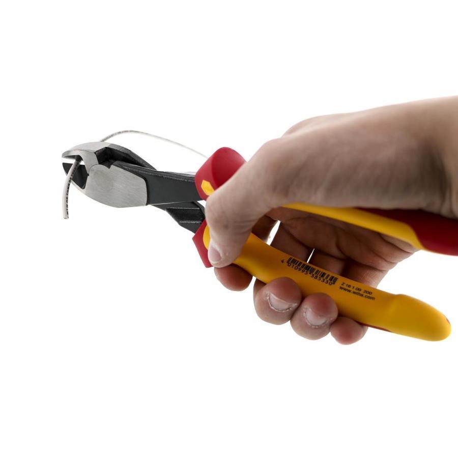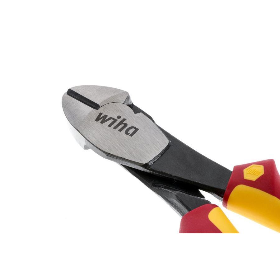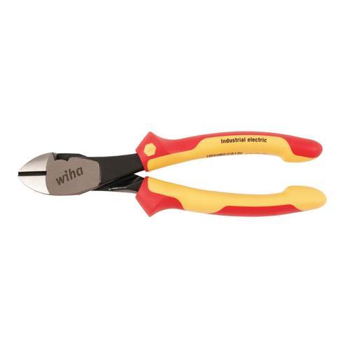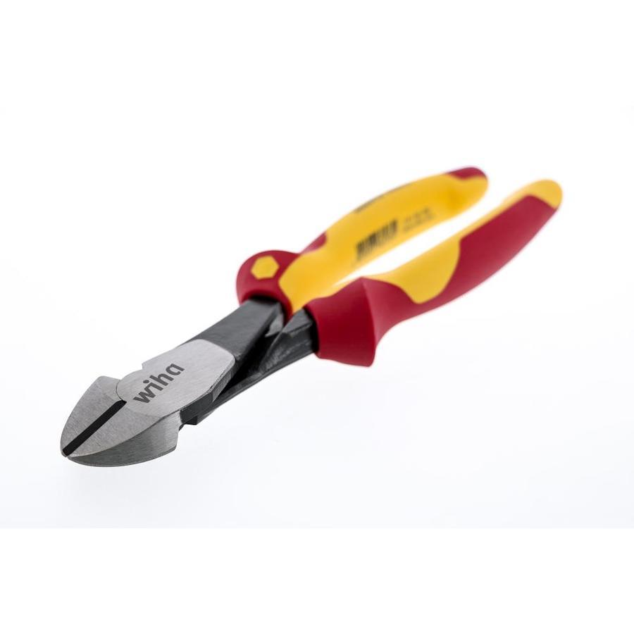 WIHA 8-in insulated industrial high leverage diagonal cutters Insulated 8-in high leverage diagonal cutter with induction hardened cutting edge Each tool individually tested at 10,000 V AC and approved for 1,000 VAC, meets IEC 60900 specification C70 special tool steel with induction hardened jaws and cutters Ergonomic dual Durometer molded soft comfort grip Molded in slip guards for added user protection Backed by the WIHA no hassle guarantee
