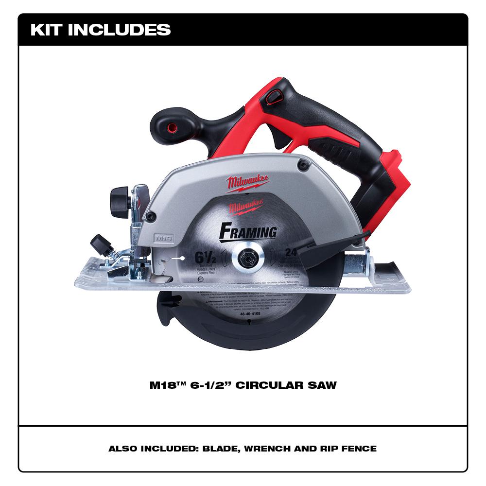 The Milwaukee M18 6½ in. Circular Saw is designed to provide users with powerful lightweight cutting for a variety of applications including plumbing, electrical, framing, finishing, and carpentry. The cordless circular saw is a high-performance tool that delivers the most durability in a cordless saw. Its powerful 3,500 RPM motor lets users quickly and easily cut through tough material such as LVL headers. Magnesium upper guards give users best-in-class durability to protect the blade from drops. The soft-grip handle is ergonomically designed to provide users with superior comfort and balance for easily controlled cuts. An easy-to-read aircraft aluminum shoe is lightweight, durable and gives users greater accuracy in rip cuts while using the lightweight cordless circular saw.