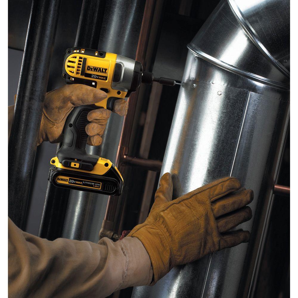 The DEWALT 1/4 in. 20-Volt Cordless Impact Driver provides up to 1400 in. lbs. of maximum torque and delivers up to 2800 RPM and 3200 IPM for fast, efficient work in a range of fastening applications. 3 LED lights on a 20-second delay after trigger release help to illuminate dark work spaces. At only 5-1/2 in. long and 2.8 lbs. in weight, this compact impact driver packs a serious punch in a small-size package.