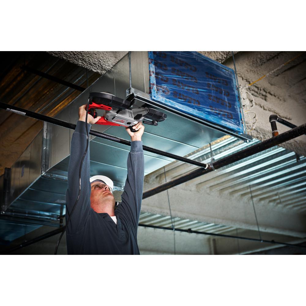 The Milwaukee 11 Amp Deep Cut AC/DC Band Saw with Case has a powerful 11 Amp motor with Constant Power Technology (CPT) for maximum performance to tackle your toughest applications. Comfortable to use and easy to control with a balanced body design, lighter weight and slimmer motor housing for better cut visibility, this tool is not lacking in cut capacity with the versatility to cut up to 5 in. x 5 in. material in a single pass. The tool-free locking adjustable shoe lets you adjust from an extended shoe to no shoe in seconds and with the debris protection system, debris is removed during operation. Built-to-last with durability features, including Job Site Armor Technology, all-metal direct drive and a gear protecting clutch, this versatile saw is ideal for use in the field, in your workshop or for DIY projects around your home.