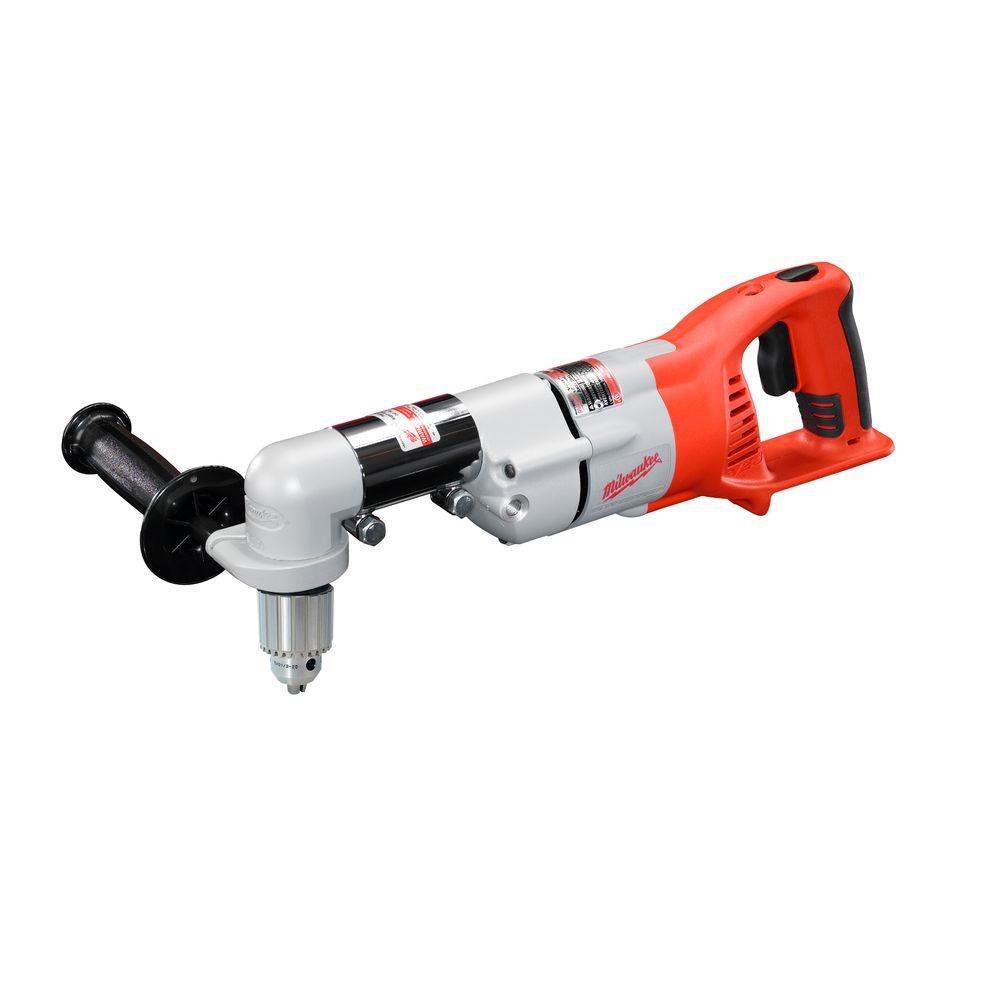 Milwaukee's cordless right angle drill is designed for boring large holes between studs or joists or in tight areas. This tool is great for plumbing and electrical applications such as drilling holes to run wire through studs and joists or boring holes in floors for plumbing venting. The tool features an extremely rugged motor and gear train that is capable of handling some of the toughest jobs and is durable enough to withstand job-site abuse. The 0721 features a 1/2 in. keyed chuck that includes a thick, clear coat finish to help prevent rusting.