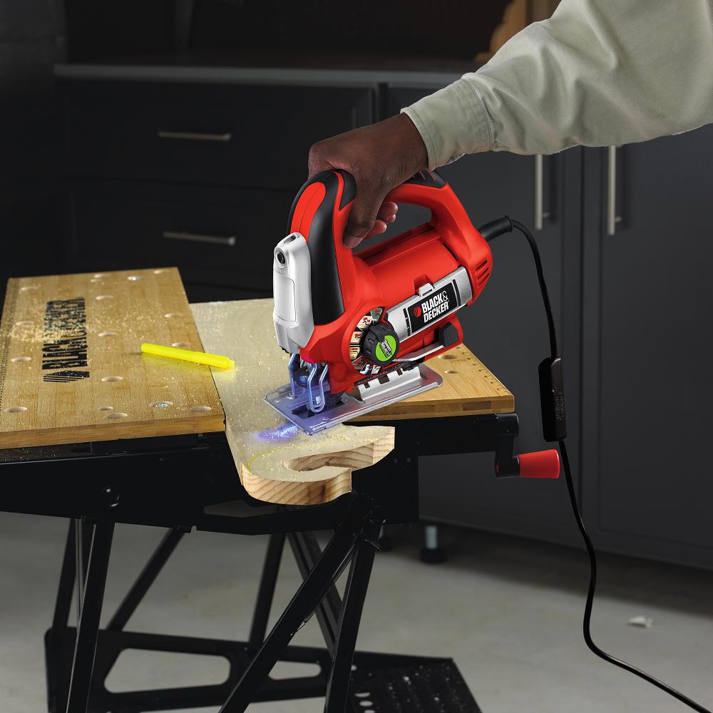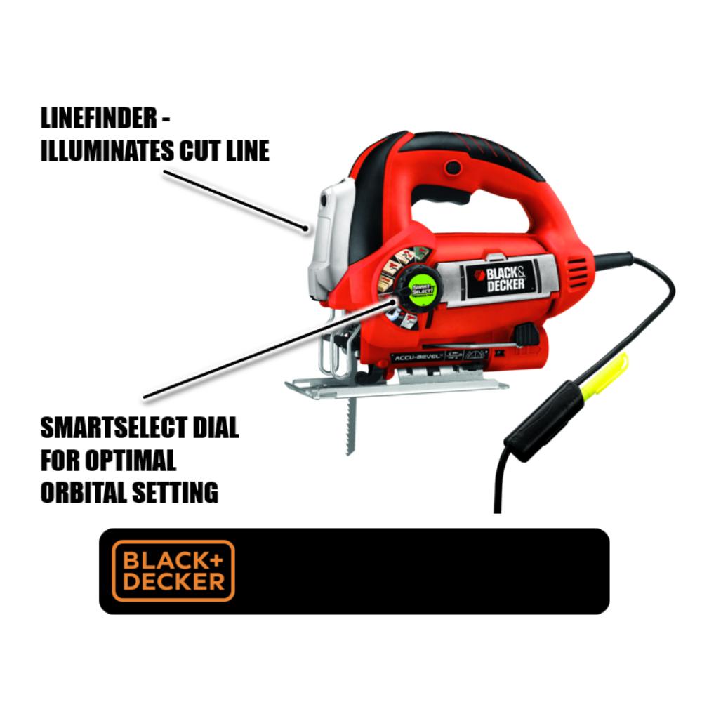 The BLACK+DECKER JS670V Jigsaw has the LineFinder that illuminates your cut line for greater visibility and accuracy. Set the dial to your task and SmartSelect automatically sets optimal orbital setting. It has onboard blade storage for quick access to blades.