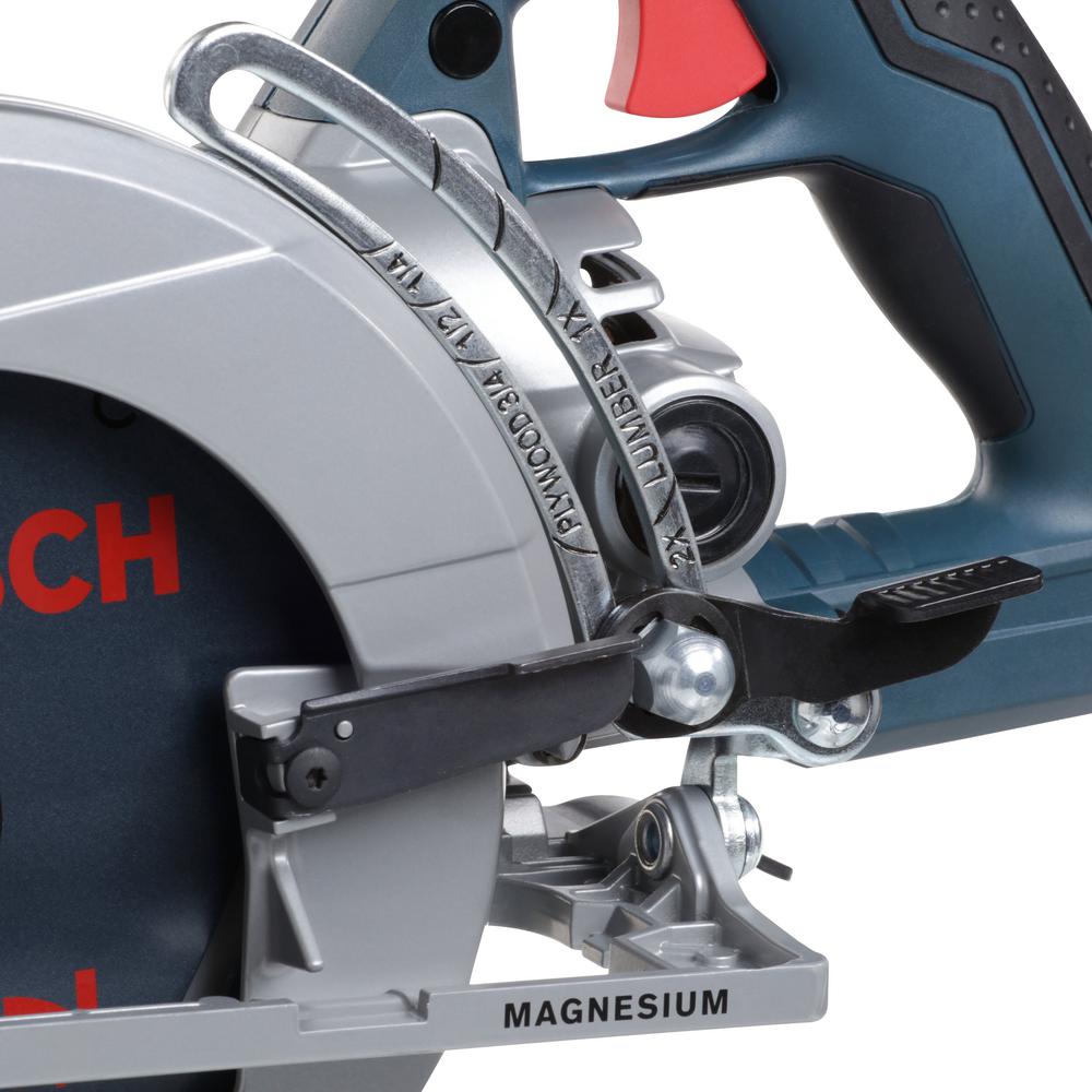 The CSW41 worm drive system features an enormous gearing ratio in a compact size, so if you want tremendous power in a manageable package, this is the saw you need. This model features sturdy magnesium housing and a die-cast magnesium footplate for true strength and a lifetime of reliable use. It also has easily serviceable brushes, large adjustment levers, a spindle lock and built-in saw hook for easy storage between tasks. Top it all off with a soft grip handle for comfort, control and accuracy and you've got 1 exceptional piece of equipment.