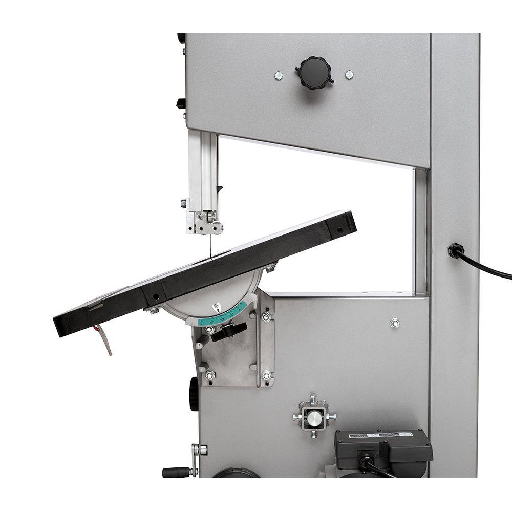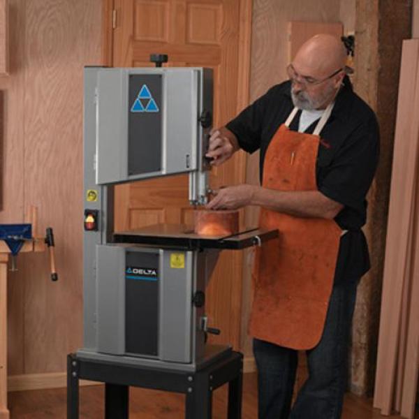 This Heavy-Duty Steel Frame Bandsaw from Delta boasts a dual-voltage (115/230V) TEFC motor for powering through demanding re-sawing applications needed for any woodworking project. A two-speed pulley system provides the flexibility needed for cutting a variety of materials and the oversized cast iron table provides exceptional support for larger cutting operations. This saw features rubber-coated upper and lower nine-spoke wheels for superb blade tracking, while the table's standard-sized T-slot accepts all 3/4 in. x 3/8 in. miter gauges.