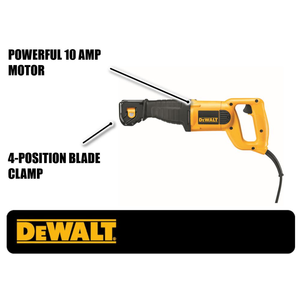 The DEWALT DWE304 Reciprocating Saw is ideal for cutting wood and nail embedded wood, light to heavy gauge metals, drywall and plaster and plastics, rubber, fiberglass and composites. This saw features a powerful 10 Amp motor designed for heavy-duty applications. The DWE304 is backed by a DEWALT 3 year limited warranty for added peace of mind.