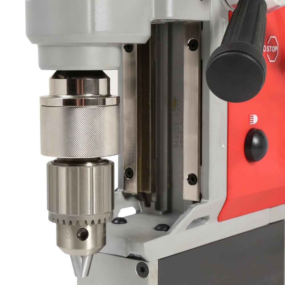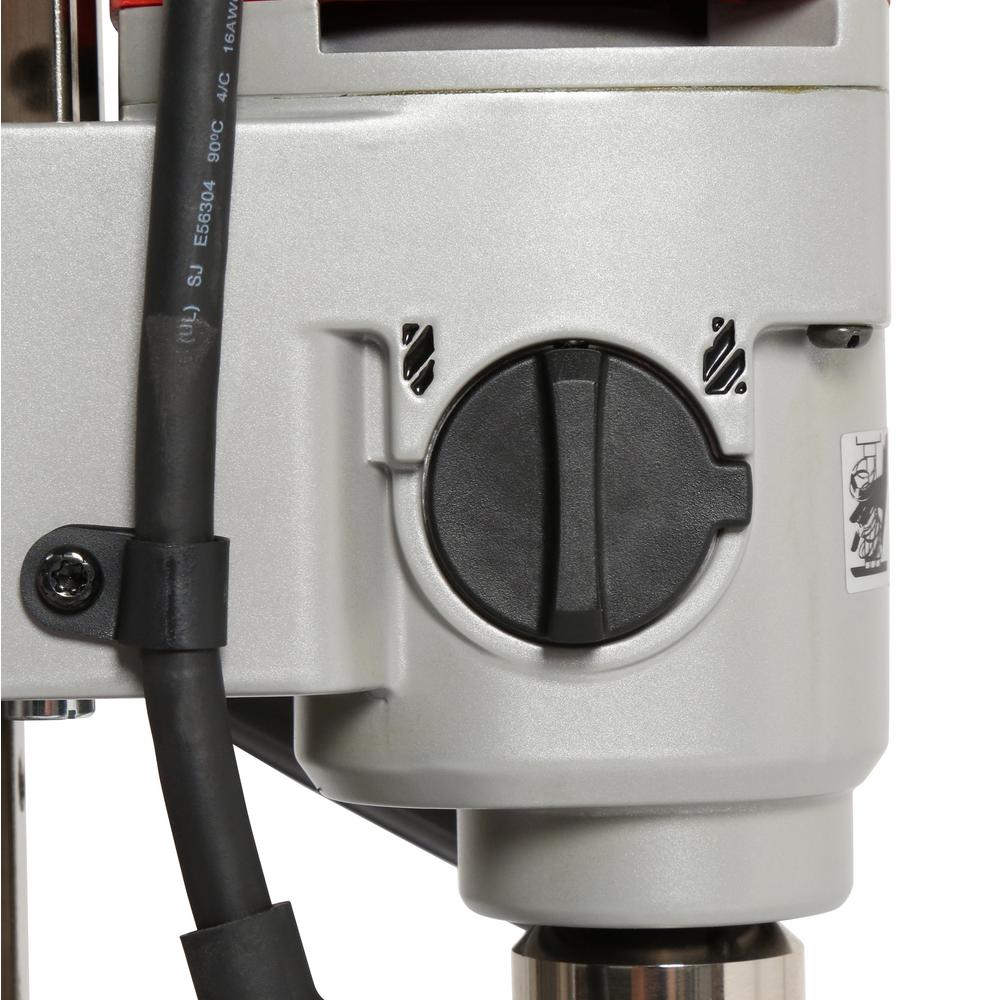 The Milwaukee 1-5/8 in. Magnetic Drill delivers the fastest drilling and strongest hold on 1/4 in. steel in its class. It is 13 Amp motor delivers the fastest drilling w/ annular cutters or twist drill bits. Equipped with a 2-speed gear box the tool can be adjusted tool-free between annular cutters at 475 RPM and twist drill bits at 730 RPM. The permanent magnet base operates without electricity for continuous magnetic hold even during power interruption. Activating partial magnet mode with a 1/4 turn of the magnet nob allows for faster, easier hole alignment. This magnet technology makes the Milwaukee 1-5/8 in. Magnetic Drill better for vertical and overhead drilling applications than traditional electromagnetic models.