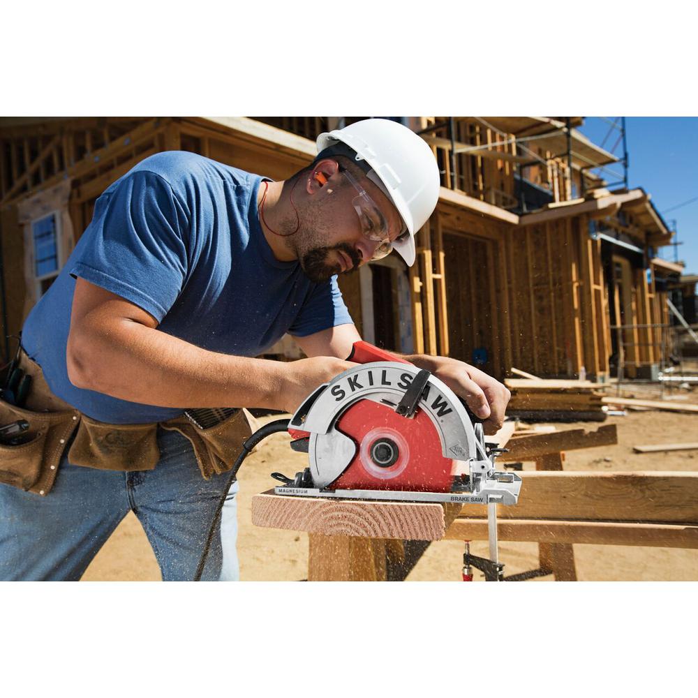 The SKILSAW Sidewinder brake circular saw model SPT67WMB-22 is the circular saw with a convenience brake and all magnesium housing. The electronic brake quickly stops the blade so you're ready for your next cut, making you more productive while the rugged magnesium motor housing keeps the motor cooler to give you powerful performance for a lifetime. Legendary SKILSAW worm drive inspired technology has been integrated into this Sidewinder with our best-in-class Dual-Field motor to provide reliability and durability. Top it off with a brake and the 56° precision beveling capacity and you will be unstoppable. It also comes with a Diablo blade so it's ready to work hard, out of the box.