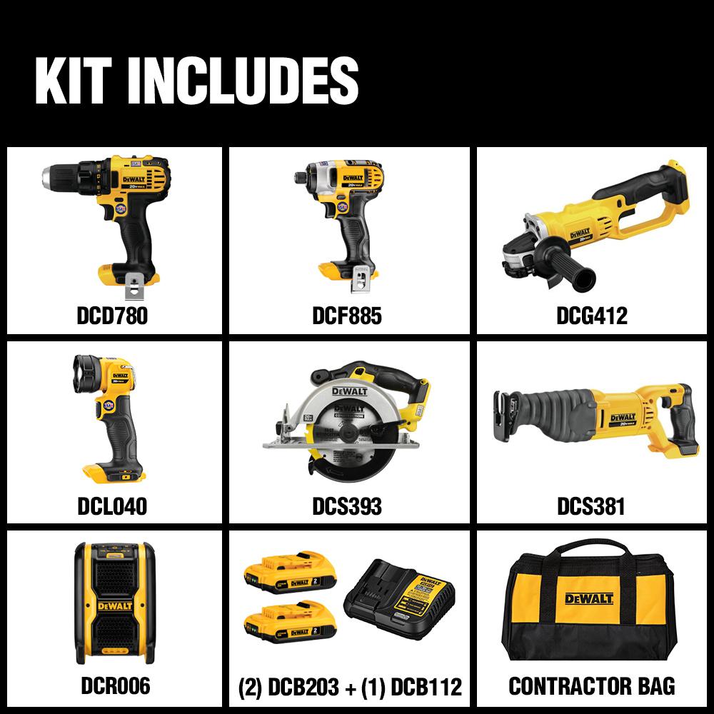 Get the cutting, grinding and fastening applications finished faster and easier with the DEWALT DCK720D2. Perfect for the job site or at home, this combo kit features a drill driver, impact driver, reciprocating saw, circular saw, grinder, Bluetooth speaker and work light. The DCK720D2 is backed by a DEWALT 3-year limited warranty for added peace of mind.