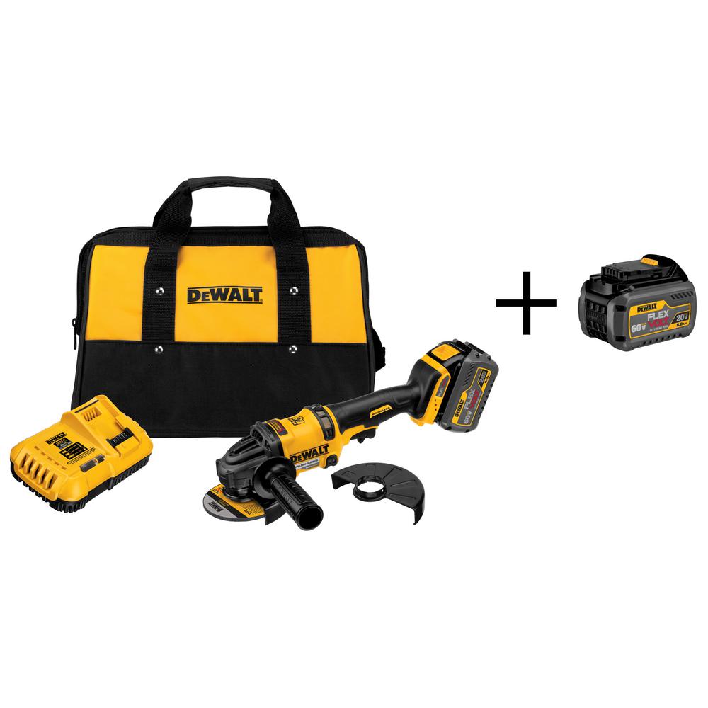 FLEXVOLT 60-Volt MAX Lithium-Ion Cordless Brushless 4-1/2 in. Angle Grinder with Battery 2Ah, Charger and Bonus Battery