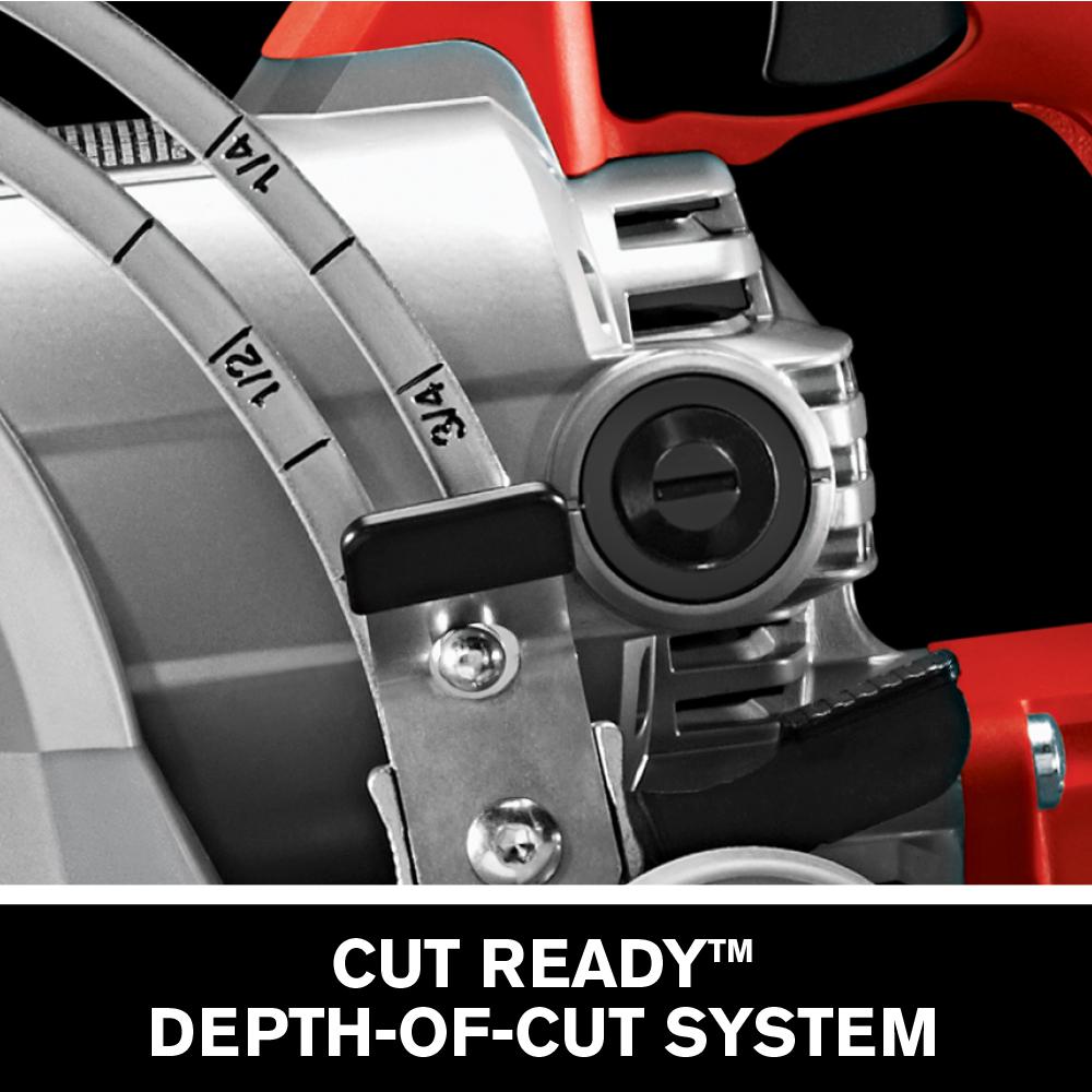 • Retractable front pointer guides saw along cut line and retracts for tight spaces