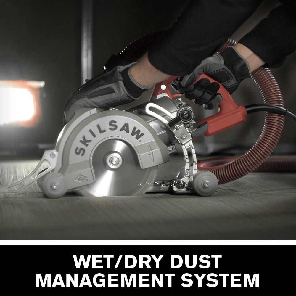 When there's concrete to conquer, MEDUSAW makes the job a whole lot easier. It's the world's first fully integrated saw designed specifically for scoring and cutting concrete accurately. Forget modifying an old saw. This one's got our legendary SKILSAW worm drive power train, plus a unique Cut-Ready adjustable plunge lock and a pivoting pointer for unmatched precision and convenience. Used wet or dry, the dual integrated dust management system takes dust out of your way. And rust resistant brackets and fasteners resist corrosion for long life. Armed with MEDUSAW, you'll power through the toughest concrete jobs. It's all part of the performance legend that is SKILSAW.