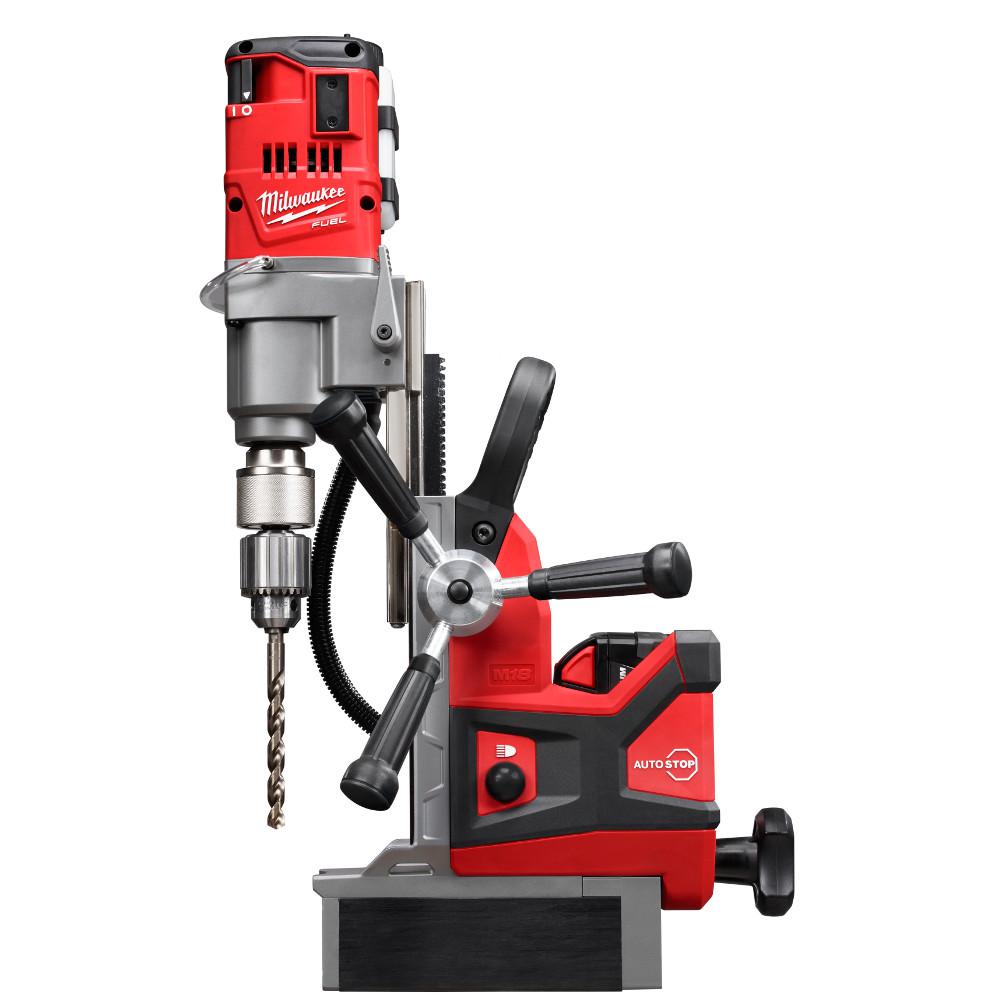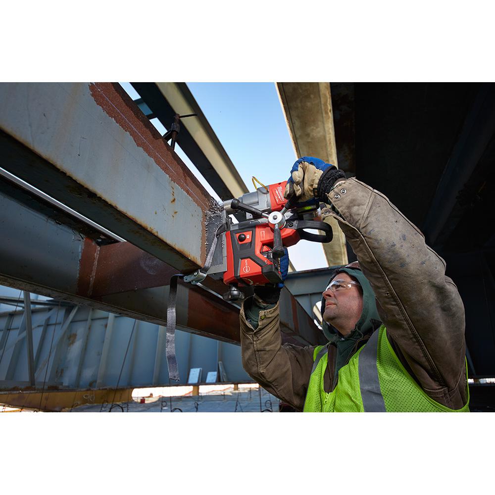 The M18 FUEL 1-1/2 in. Magnetic Drill drills faster than the number one corded competitor, delivers the strongest magnetic hold on 1/4 in. steel providing a safer drilling environment in this material, and drills over (75) 13/16 in. holes per charge. The M18 FUEL 1-1/2 in. Magnetic Drill delivers safer drilling on 1/4 in. steel by providing the industry's strongest holding force on this material. By utilizing permanent magnets, the magnetic base operates without electricity; ensuring that the magnet does not deactivate if the battery is drained. Equipped with Auto-Stop lift-off detection, power to the motor is automatically cut if excess rotational motion is detected while drilling. Powered by a Milwaukee POWERSTATE Brushless Motor, both drills are faster than their corded counterparts, and deliver the same 1-1/2 in. annular cutter capacity. REDLINK PLUS Intelligence is the most advanced electronic system on the market, preventing damage to the tool and battery caused by overloading or overheating. The M18 REDLITHIUM 8.0 Battery Pack delivers up to 5X more run time, 35% more power, and runs 60% cooler than standard 18-Volt lithium-ion batteries. It maintains full power and runs substantially cooler through heavy applications, allowing users to push their cordless tools harder and longer than ever before.
