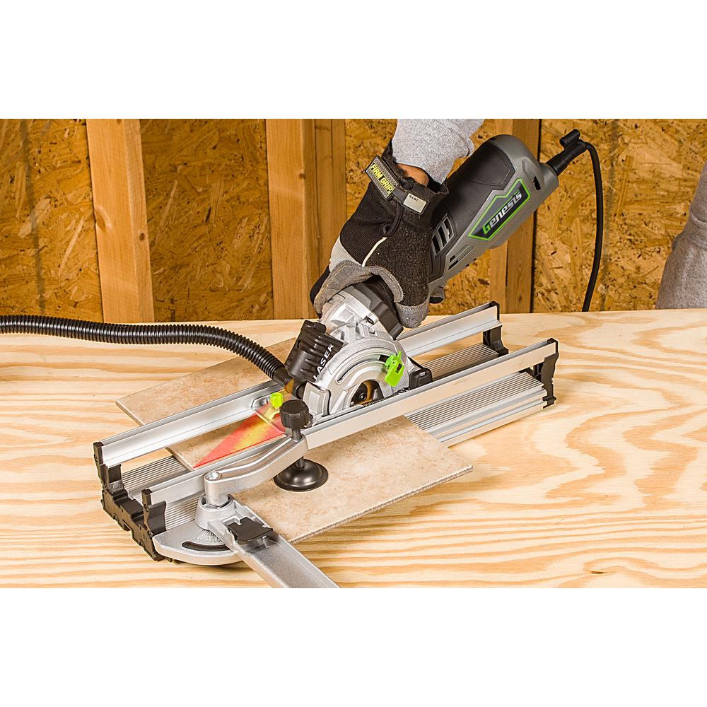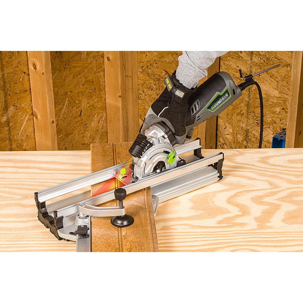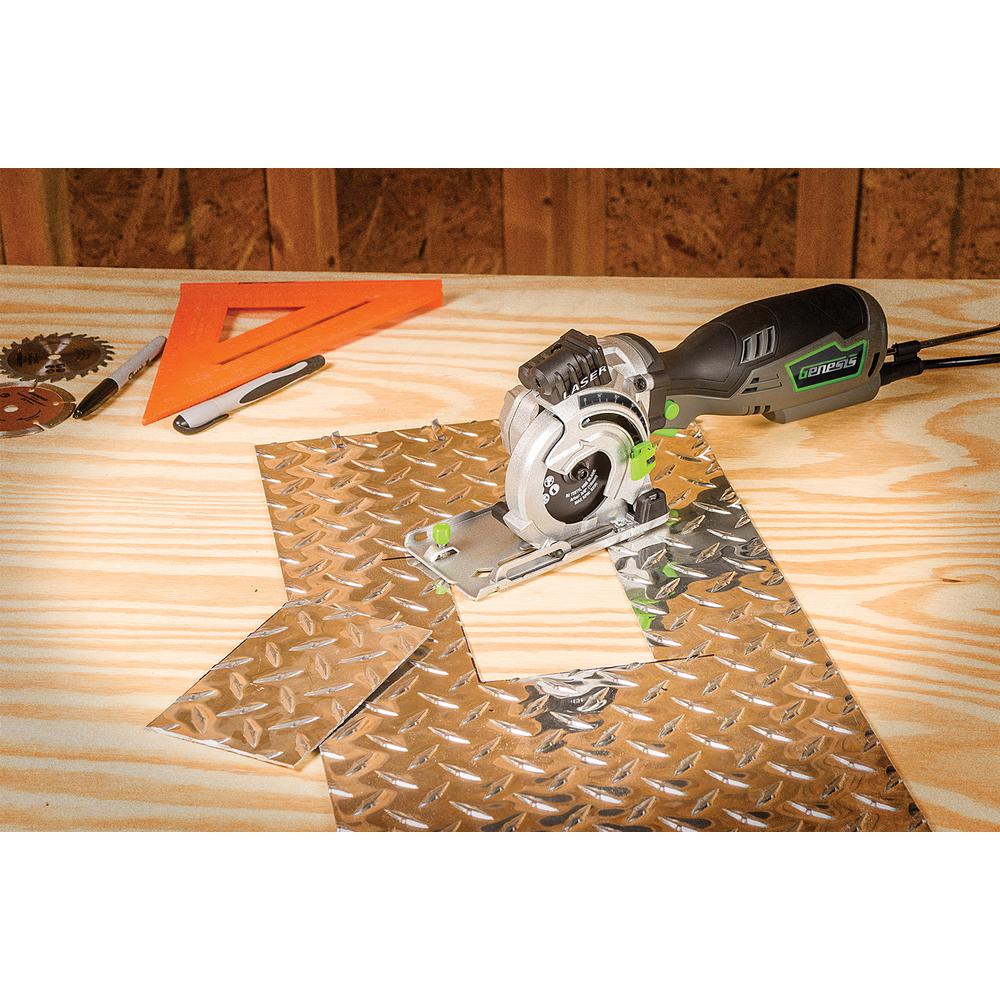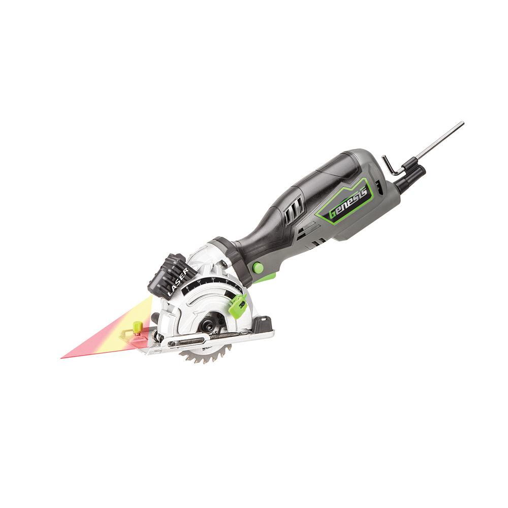 The Genesis GPCS535K Plunge Cut compact circular saw is a great addition to your toolbox for completing drywall installation and repair. The tool is equipped with a laser guide, dust adapter, carrying bag, diamond blade, miter base and arbor wrench. Faster blade changes are made possible with the spindle lock and it has a max cutting capacity of 1-1/8 in. D.