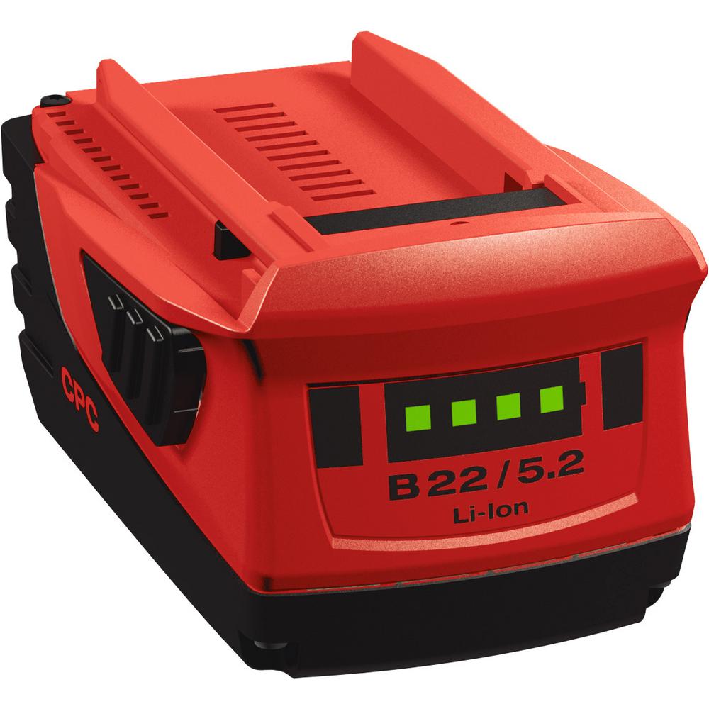 • Hilti 22-Volt CPC lithium-ion batteries have an LED indicator on the batteries to show the current state of charge