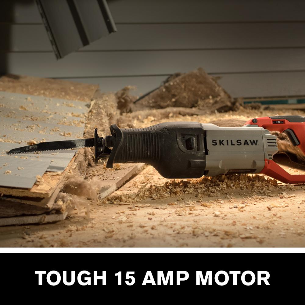 The new 15 Amp Heavy-duty Reciprocating Saw delivers rugged, dependable performance unlike any recipe saw you've used before. Patented Buzzkill Technology stops vibration dead in its tracks. The full-frame, linear counterbalance stops vibration at the source, instead of moving it around and shifting it to the user, as other saws do. The 15 Amp motor powers through the most demanding work, while Constant Response Electronics sense the load and immediately increase the power when you need it. That means comfortable, controlled cuts that don't wear on you or your tool. The 15 Amp Heavy-Duty Reciprocating Saw joins the performance legend that is SKILSAW.