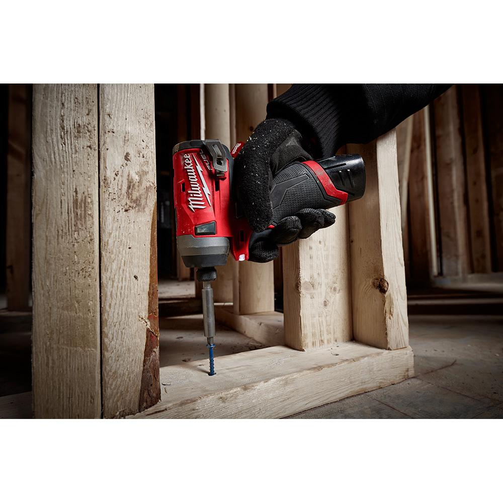 The M12 FUEL 1/4 in. Hex Impact Driver once again raises the bar for 12-Volt performance with best in class driving speed, power, and size. By focusing on productivity, this Impact Driver gets the job done faster by being over 20% faster in application speed versus the competition. This tool outputs over 1,300 in./lbs. of torque that allows the user to get more work done by completing a wide range of fastening. Measuring only 5.1 in length allows for unmatched access in tight spaces. The POWERSTATE Brushless Motor delivers up to 0 RPM to 3,300 RPM with constant power output to drive screws faster. REDLINK PLUS Intelligence is the most advanced electronic system on the market, preventing damage to the tool and battery caused by overloading or overheating. For use with M12 REDLITHIUM Compact Batteries or Extended Capacity Batteries which deliver more work per charge and more work over the life of the pack than competitive batteries on the market. The 4-Mode DRIVE CONTROL provides greater control over output speed and power for greater versatility by delivering 0 RPM to 1,300 RPM in Mode one 0 RPM to 2,400 RPM in Mode 2 and 0 RPM to 3,300 RPM in Mode 3. Mode 4 is Self-Tapping Screw Mode which is designed to reduce walking when starting self-tapping screws as well as reduce overdriving, breaking and stripping out screws.