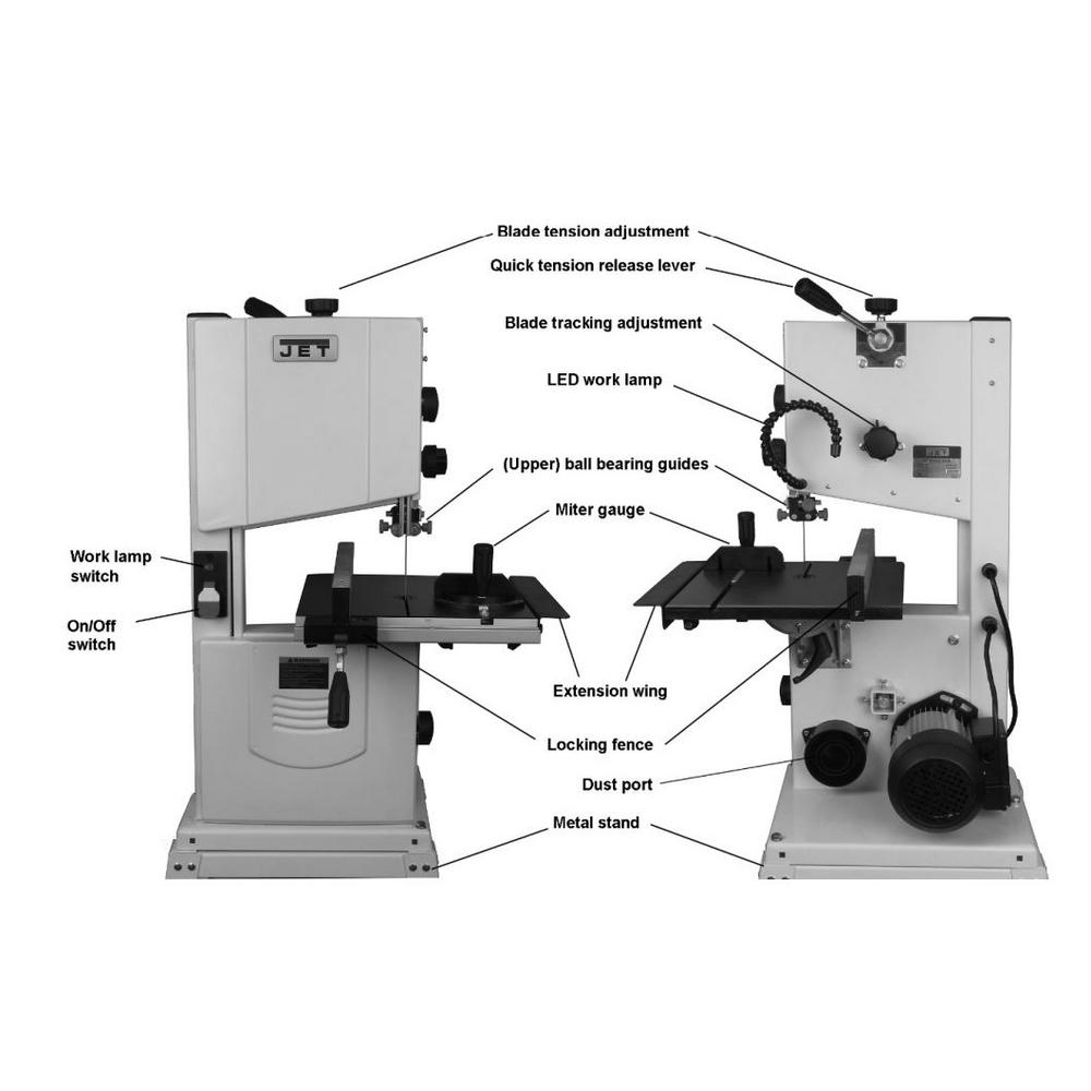 Introducing the all new Jet 10 in. Band Saw. If space is at a premium in your shop, this is the band saw for you. With quick release blade tension, upper and lower ball bearing blade guides, an extra-large cast iron tilting table and an easily adjustable LED work light - this well-equipped band saw has all the features you're used to on bigger band saws.