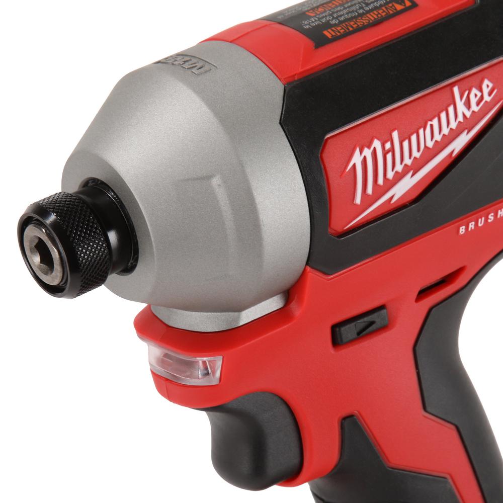 The M18 Brushless Cordless Compact 1/4 in. Hex Impact Driver is the industry's fastest 18-Volt compact impact solution. REDLINK electronics and REDLITHIUM batteries deliver 3,200 RPMs for best in class application speed. Brushless motor technology provides 1,600 in./lbs. of torque, more runtime and a more compact tool at 5.1, which means less trips to the charger and greater access in tight spaces.