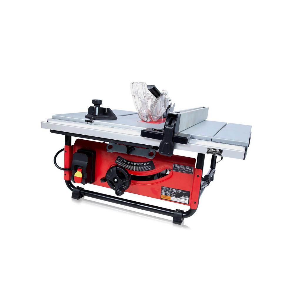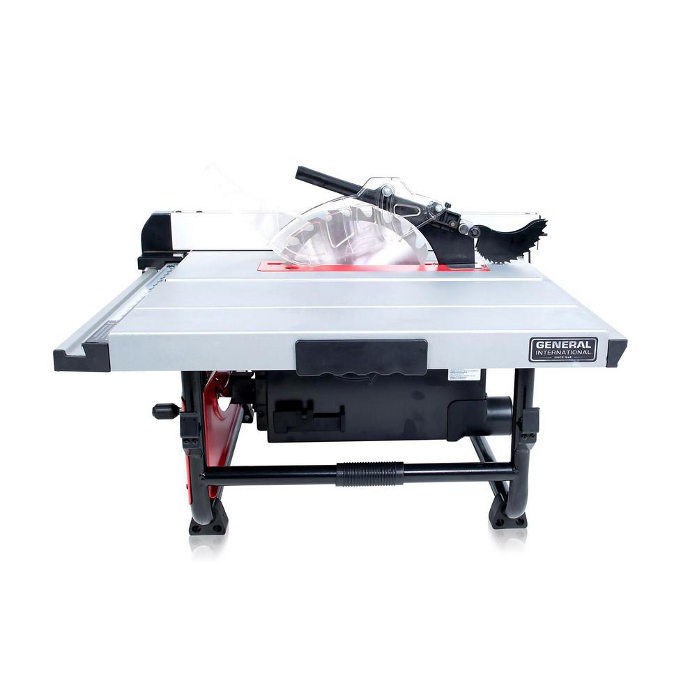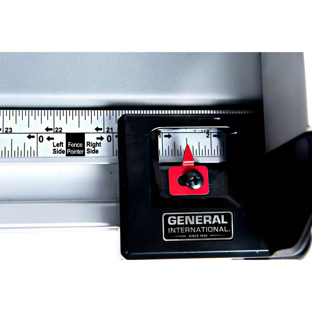 This General International 10 in. 15 Amp 120-Volt 60 Hz commercial, benchtop table saw is perfect for any woodworker, carpenter or hobbyist. It features a 15.0 Amp high-torque motor with the power to cut pressure-treated lumber and hardwoods. It offers 3.33 in. D of cut at 90° and 2.5 in. at 45° for multiple tasks. The onboard storage provides easy access to the components and push stick when not in use. Includes a 2-year limited warranty.