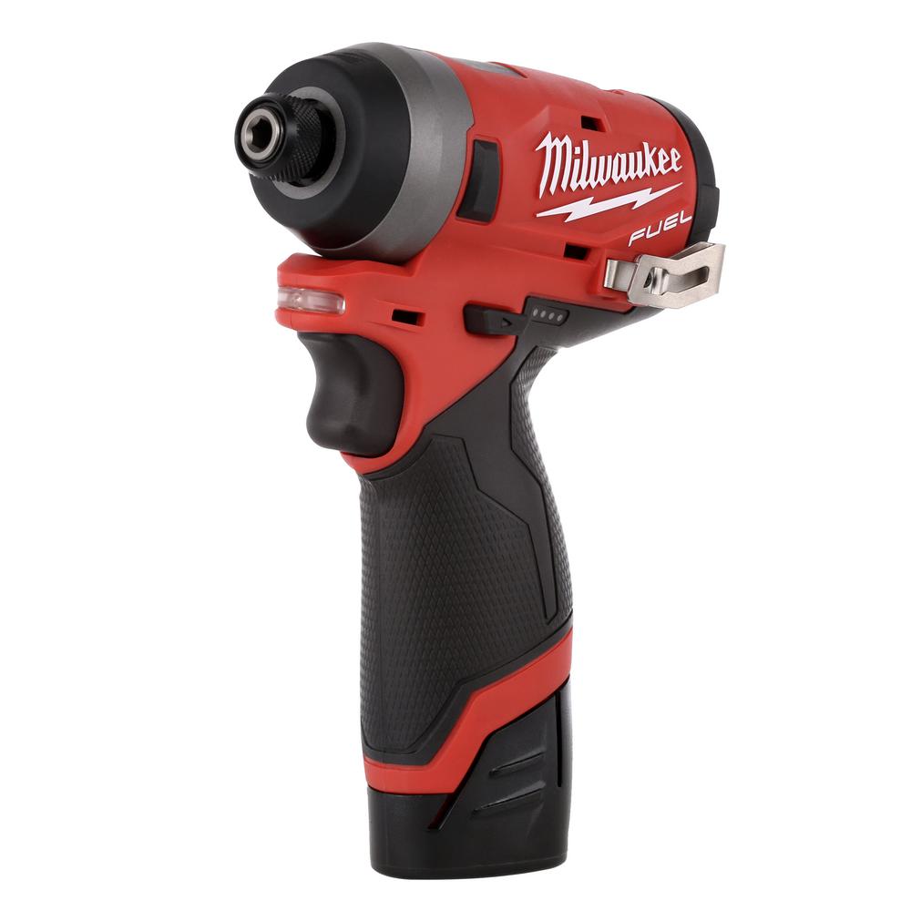 - Includes: (1) M12 FUEL 1/4 in. hex impact driver, (2) M12 REDLITHIUM 2.0 compact batteries, (1) M12 lithium-ion charger, (1) carrying case and (1) removable belt clip, (1) M12 ROVER LED compact flood light (2364-20)