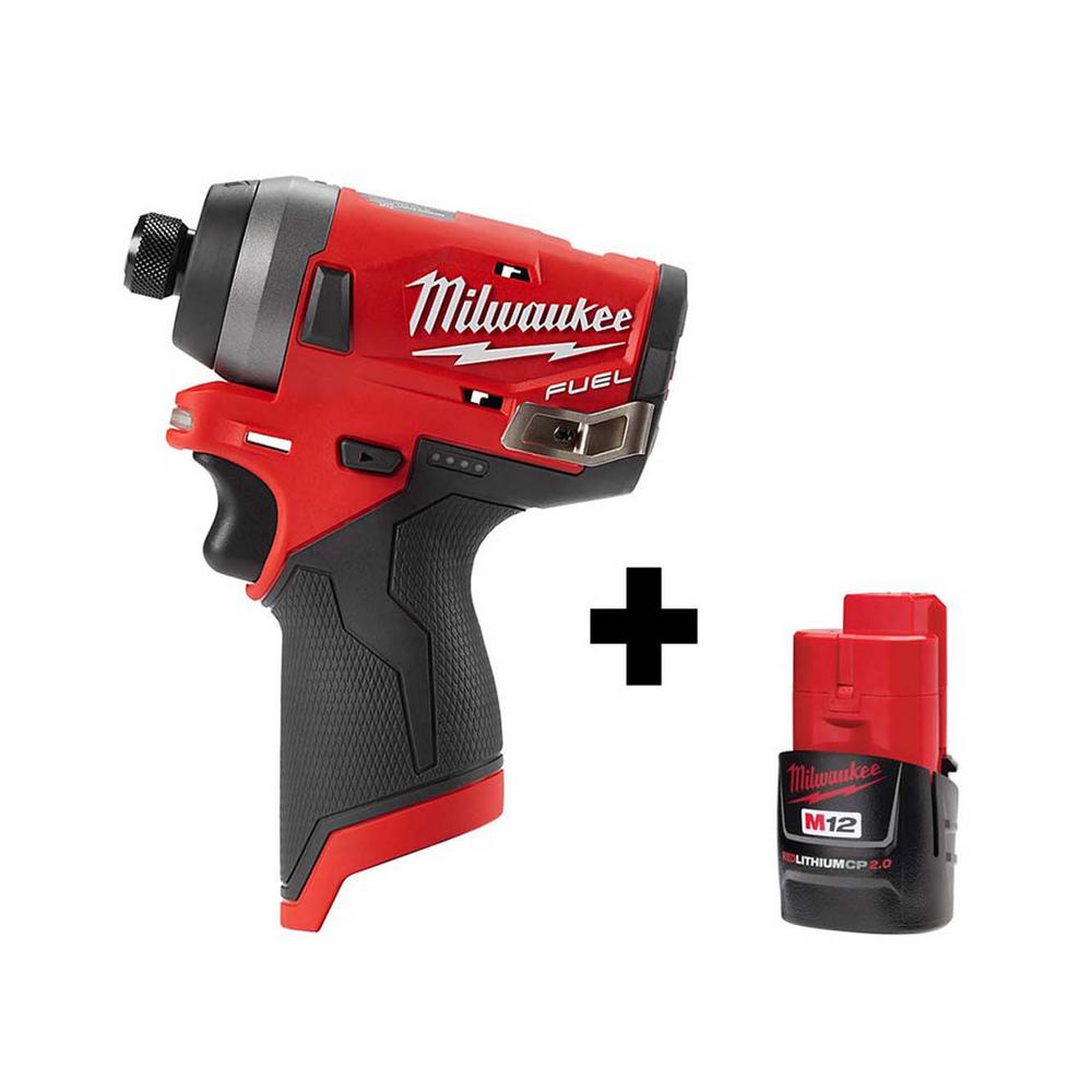 The M12 FUEL Brushless 1/4 in. Hex Impact Driver once again raises the bar for 12V performance with best in class driving speed, power and size. By focusing on productivity, this Impact Driver gets the job done faster by being over 20 percent faster in application speed vs. the competition. This tool outputs over 1,300 in. lbs. of torque that allows the user to get more work done by completing a wide range of fastening. Measuring only 5.1 in length allows for unmatched access in tight spaces. The POWERSTATE Brushless Motor delivers up to 0-3,300 RPM with constant power output to drive screws faster. REDLINK PLUS Intelligence is the most advanced electronic system on the market, preventing damage to the tool and battery caused by overloading or overheating. For use with M12 REDLITHIUM Compact Batteries or Extended Capacity Batteries, which deliver more work per charge and more work over the life of the pack than competitive batteries on the market. The 4-Mode DRIVE CONTROL provides greater control over output speed and power for greater versatility by delivering 0-1,300 RPM in Mode 1, 0-2,400 RPM in Mode 2 and 0-3,300 RPM in Mode 3. Mode 4 is Self-Tapping Screw Mode which is designed to reduce walking when starting self-tapping screws as well as reduce overdriving, breaking and stripping out screws. Includes A Free M12 Compact 2.0Ah Battery Pack (48-11-2420).