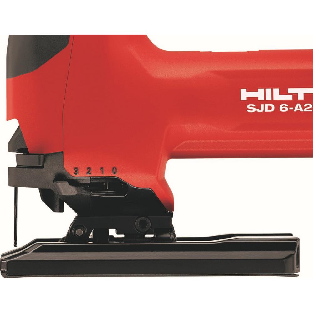 The new cordless jigsaw SJD 6-A22 exceeds most corded tools with its detailed precision work and production cutting performance, and its the first ever Hilti cordless jigsaw. Offering a variable speed dial and speed trigger, LED light for illuminating cutting areas, keyless quick connect chuck, and dust blower, the new cordless jigsaw is more efficient and versatile. Ideal for cutting and trimming a wide variety of metals, plastics, and wood and wood composites up to 150 mm thick. Compatible with all Hilti 22-Volt Lithium-Ion batteries.