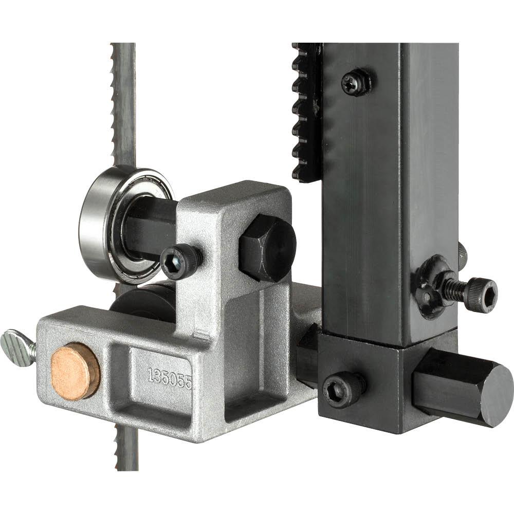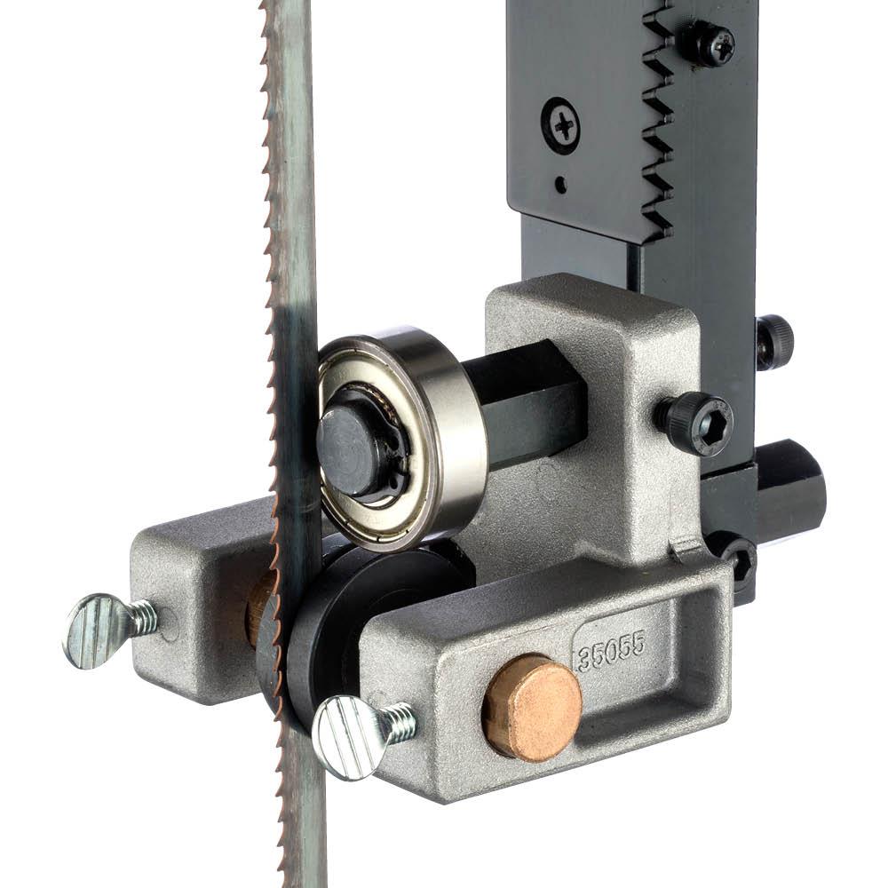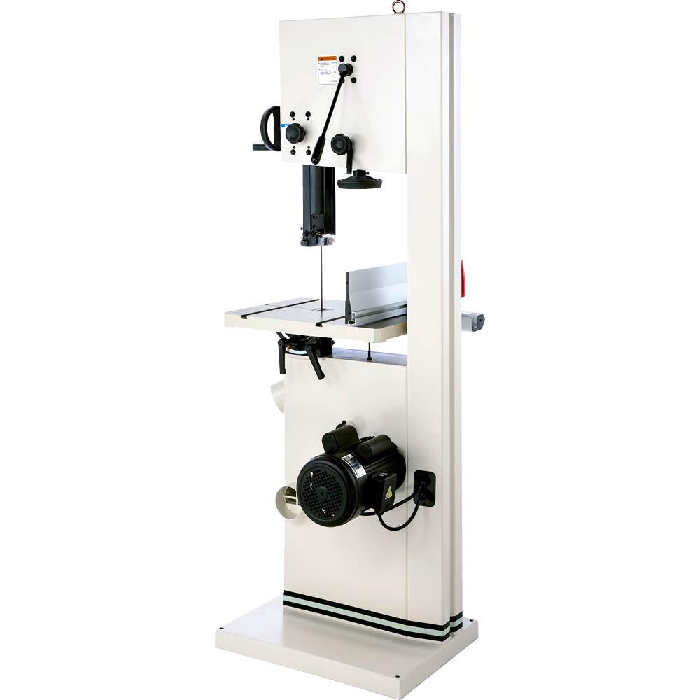 Versatility, capacity, strength and exceptional value are key components going into the build of this middle-weight workhorse. European design elements, such as roller disc blade guides, steel column box-frame with rigid W shaped spine and a hinged blade guard enclosure are extras that make this saw a pleasure to use. With Shop Fox, you don’t pay more for important accessories like the premium, dual-height fence with a hairline indicator scale. The cast iron and aluminum extruded fence can be set to the low (1/2 in.) position for close-in detail work or at 6 in. for extra support when resawing taller pieces. Add in a storage cabinet for blades, super-efficient dual-port dust collection, a quick-release blade tension lever and viewing windows for tracking and blade tension settings and you’ve got a feature-packed machine with a small foot-print and over-sized performance.