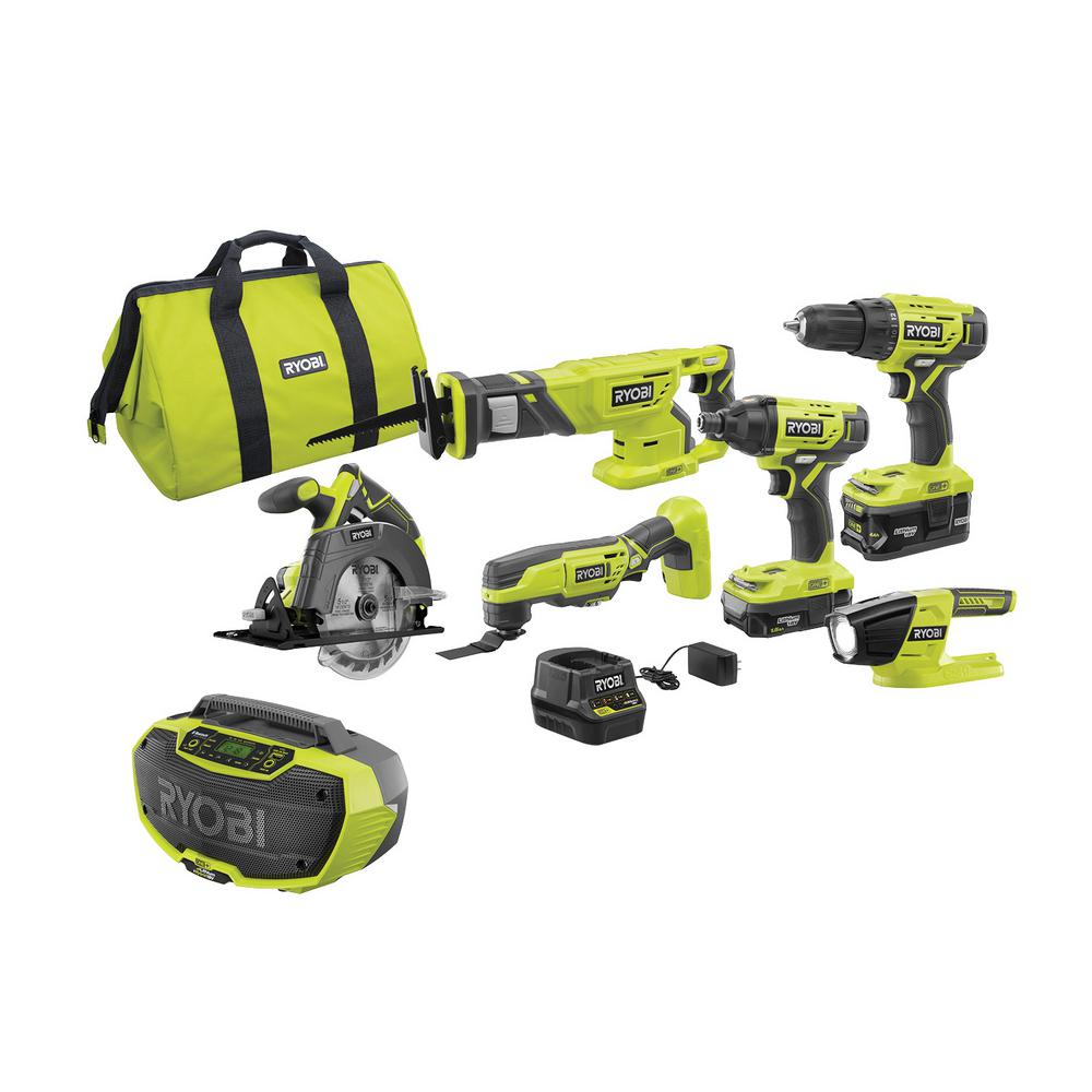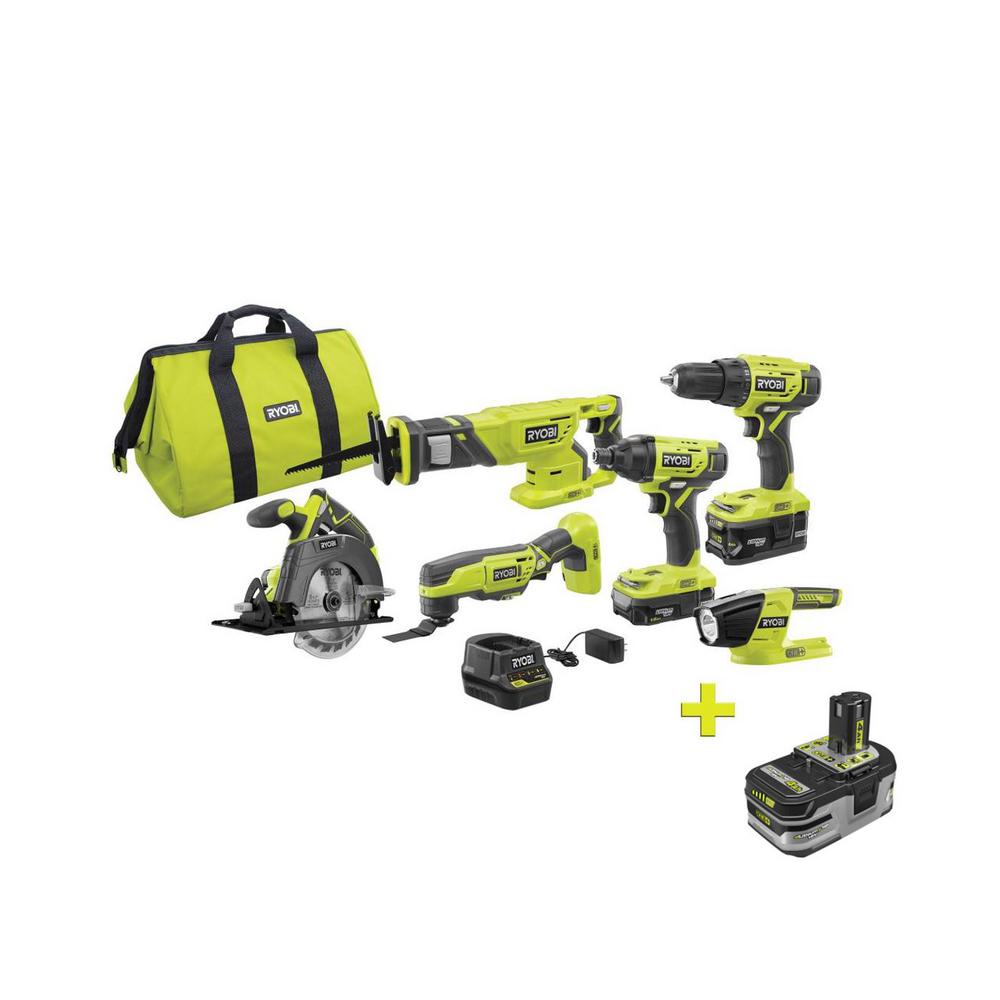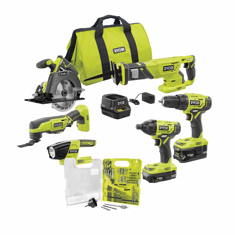 18-Volt ONE+ Lithium-Ion Cordless 6-Tool Combo Kit with (2) Batteries, Charger, and Bag