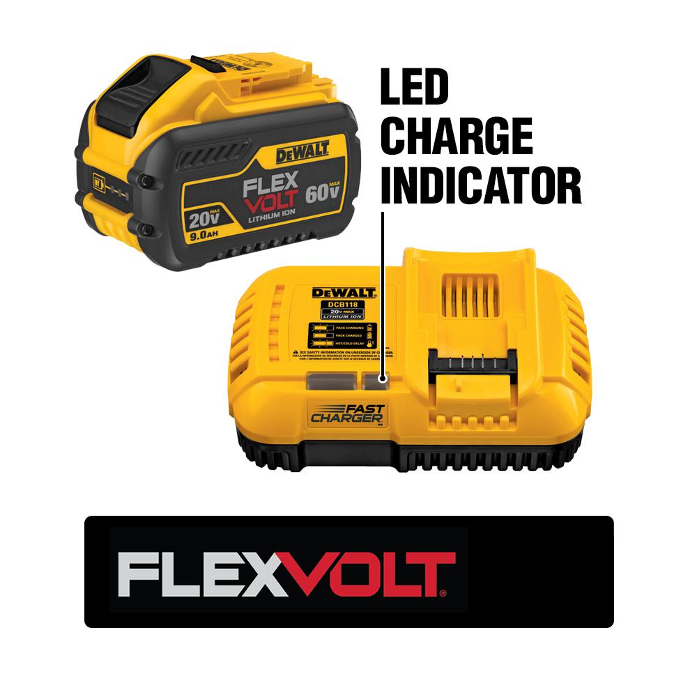 • DCB118: compatible with all 20-Volt max and 60-Volt max DEWALT batteries