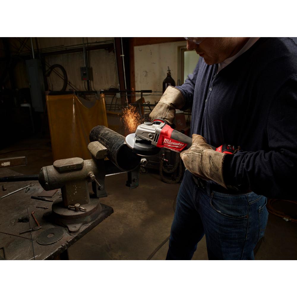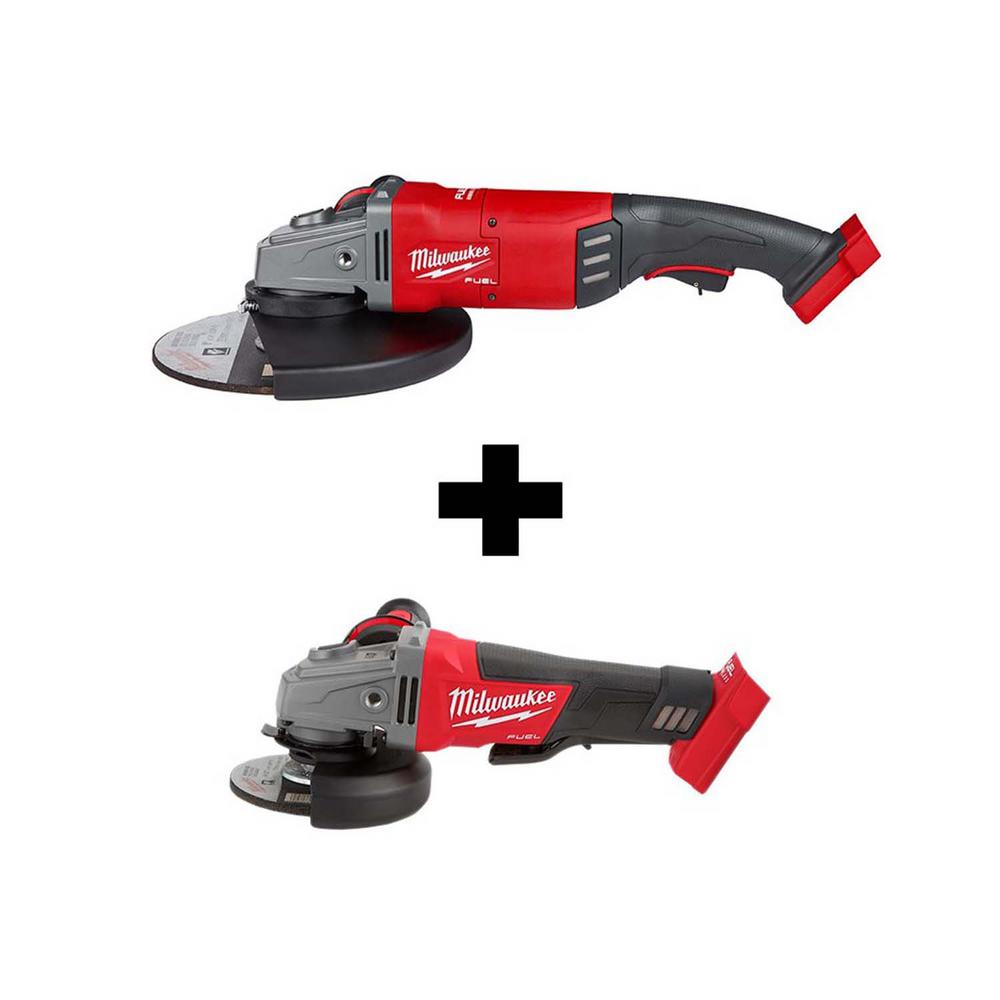 The M18 FUEL 7 in. to 9 in. Large Angle Grinder is the worlds first 18-Volt LAG generating the power of a 15 Amp corded large angle grinder, is up to 2 lbs. lighter and has 9 in. grinding capacity. Providing high performance, advanced ergonomics and legendary durability, this grinder is designed to complete the toughest grinding, surface preparation and cutting applications with any 7 in. to 9 in. accessory. The POWERSTATE Brushless Motor provides 6,600 RPM and higher speeds under load for corded grinding/cutting performance. REDLINK PLUS intelligence ensures maximum performance and protection from overload, overheating and over discharge. Tool-free accessory changes using the FIXTEC nut and guard adjustments mean less downtime during work. The worlds first cordless grinder delivers the power of a corded grinder with up to 2x more run time and up to 10x longer motor life. The M18 FUEL 4-1/2 in. to 5 in. Grinder supplies maximum sustained power to complete the toughest grinding, surface preparation and cutting applications.