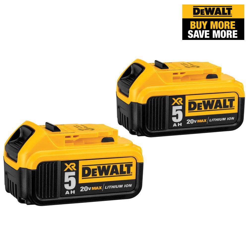 Keep your DEWALT 20-Volt Tool running longer with a premium 5.0 Amp hour Lithium-Ion battery packs. These packs are compatible with entire line of 20-Volt Max tools. Backed by a DEWALT 90-day Money Back Guarantee for added peace of mind.