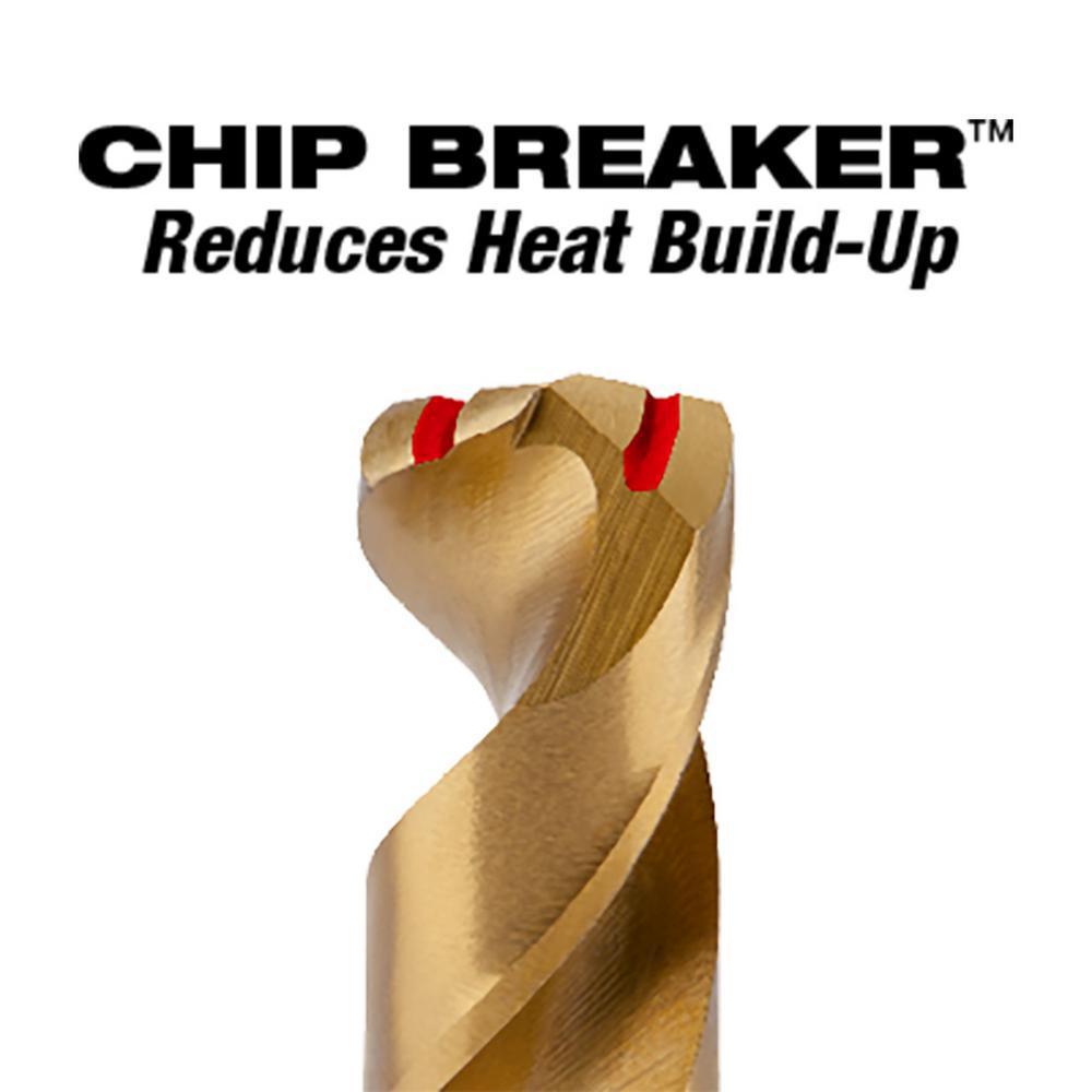 • Titanium coated dril bits for up to 5X life vs. black oxide drill bits