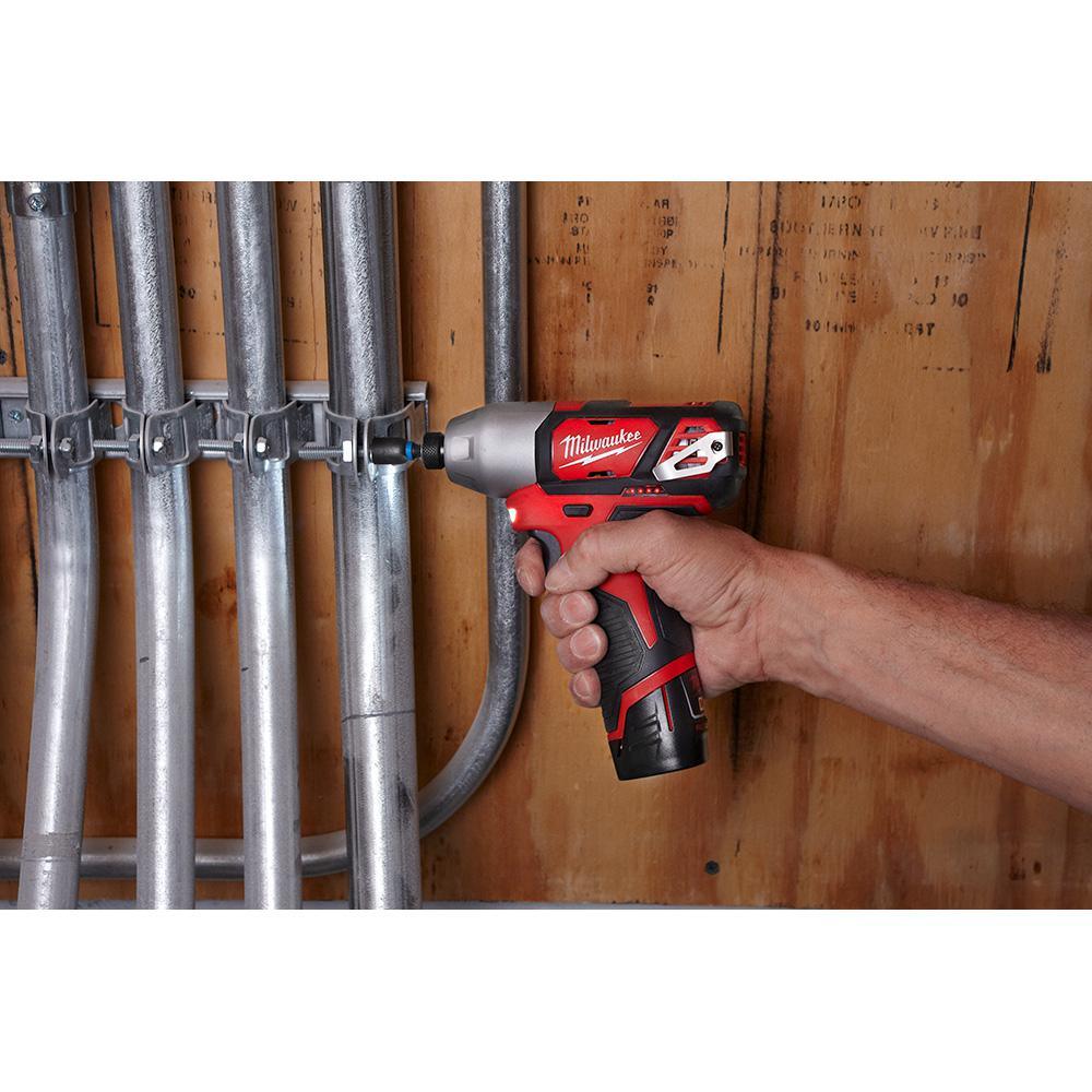 • Impact driver's Milwaukee impact mechanism delivers 1,000 in./lbs. of torque