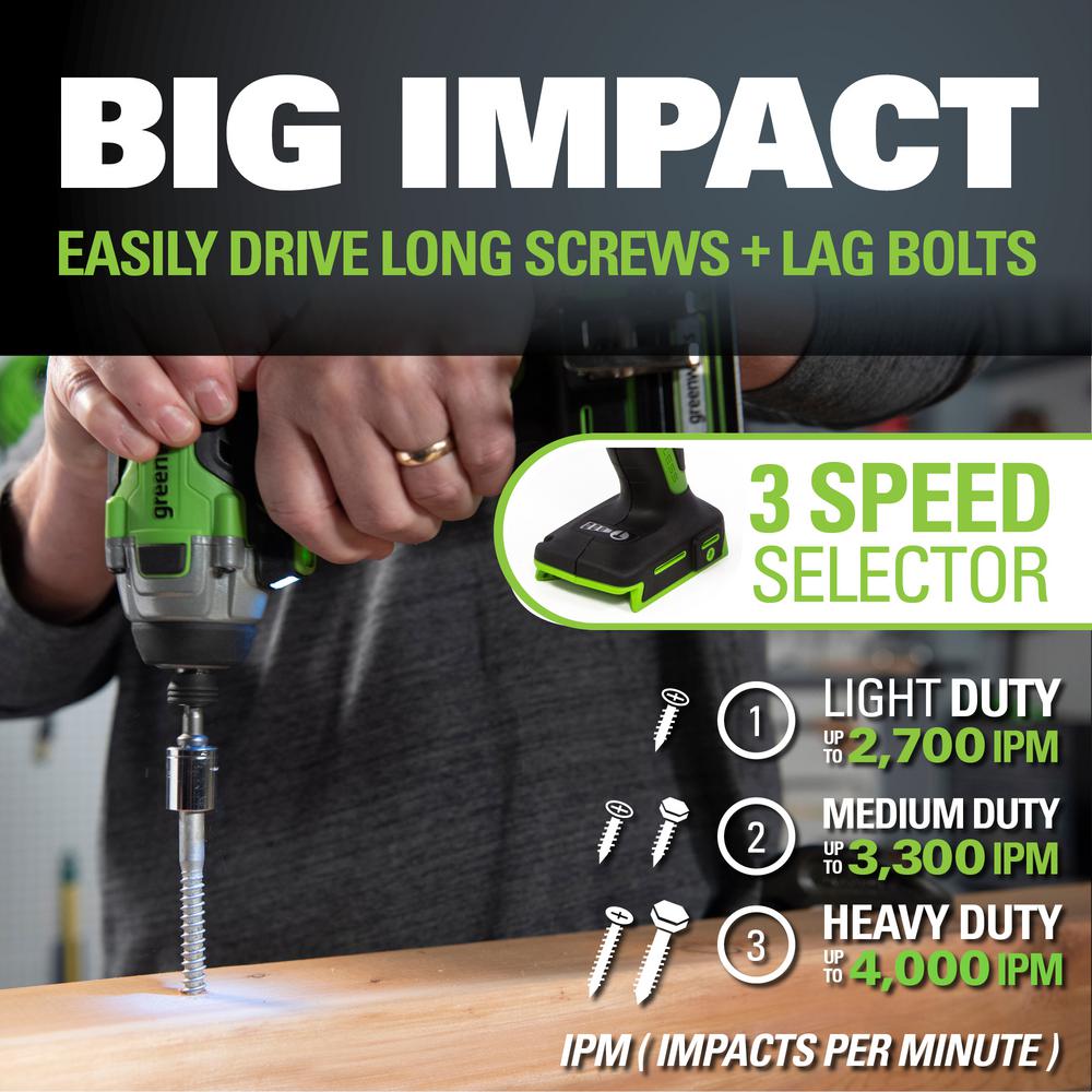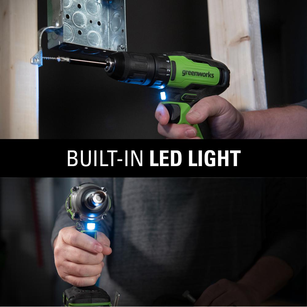 • Greenworks 24-Volt lithium-ion battery provides 20% more power and 35% more run-time, and delivers fade-free power with no memory loss after charging