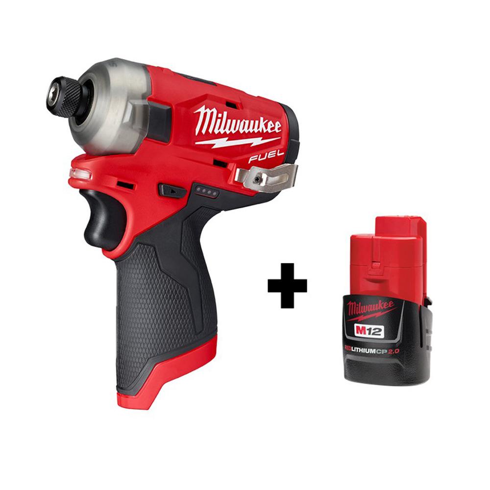 The Milwaukee M12 FUEL SURGE ¼ Hex Hydraulic Impact Driver is the industry's first 12-Volt hydraulic impact driver. Featuring the FLUID-DRIVE Hydraulic Powertrain, the hydraulic impact will allow users to experience operation up to 2X quieter with less vibration for smoother and faster driving speeds compared to standard impacts. The compact size of the tool and battery provides users with unmatched access in tight spaces and allows for easy transport on a tool belt and easy fitting into a job site tool bag. Performance is not sacrificed despite lower peak torque due to its Longer Sustained Torque that allows the tool to complete core users most common applications. The POWERSTATE Brushless Motor delivers up to 0-3,000 RPM with constant power output to drive screws faster. Built-in REDLINK PLUS Intelligence is the most advanced electronic system on the market, preventing damage to the user's tool and battery caused by overloading or overheating. The cordless impact driver is compatible with all Milwaukee M12 REDLITHIUM Compact Batteries or Extended Capacity Batteries, delivering users with more work per charge and more work over the life of the pack than competitive batteries. The impact driver's 4-Mode DRIVE CONTROL provides users with greater control over output speed and power for greater versatility in a wide range of applications. Includes A Bonus M12 2.0 Ah Compact Battery Pack (48-11-2420).