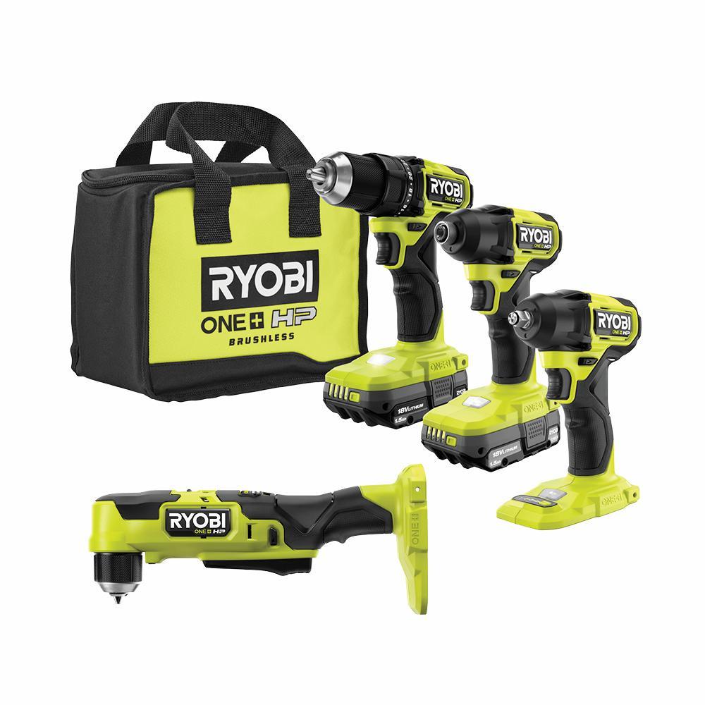RYOBI introduces the ONE+ HP 18V Brushless Cordless Compact 1/4 in. Impact Driver and 3/8 in. Impact Wrench Kit with (2) 1.5 Ah Batteries, Charger, and Bag. At a length of just 5.3 in., the ONE+ HP 18V Brushless Compact 1/4 in. Impact Driver is 26% more compact and over 23% lighter than the brushed version making it ideal for working in tight spots and completing overhead applications without strain. The brushless motor provides up to 1,700 in/lbs. of torque—and up to 3,800 IPM (Impacts Per Minute) to quickly drive a variety of fasteners. And to help eliminate downtime, we paired this impact driver with a variable speed trigger for precise control of up to 2,900 RPM. You’ll also appreciate the knurled 1/4 in. hex collet with one-handed bit release. This Compact Brushless 3/8 in. Impact Wrench is designed to live up to professional expectations, delivering a powerful solution in the most compact and lightweight design. Best of all, it is part of the RYOBI ONE+ System of over 175 cordless tools that all work on the same battery platform. Backed by the RYOBI 3-Year Manufacturer's Warranty, this ONE+ HP 18V Compact Brushless 2-Tool Kit Includes a 1/4 in. Impact Driver, 4-Mode 3/8 in. Impact Wrench, (2) 1.5 Ah Lithium-Ion batteries, charger, tool bag, and operator's Manual.