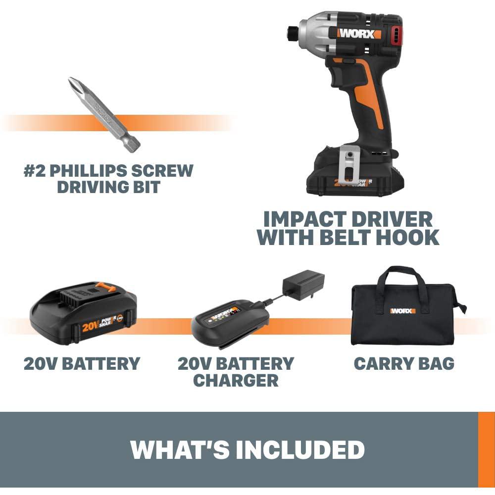 Worx POWER SHARE 20-Volt Cordless and Brushless Multi-Speed 1/4 in. Hex Impact Driver with Quick Change Chuck