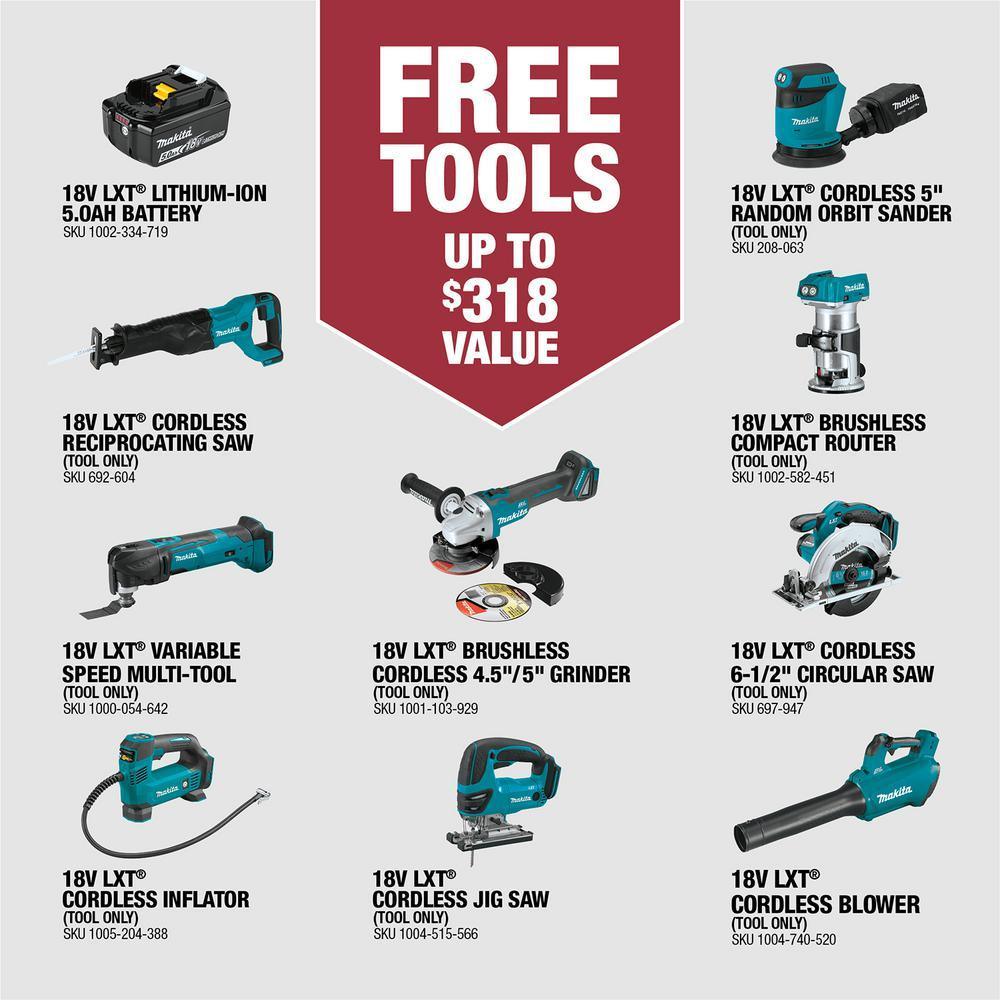 18-Volt LXT Brushless 2-Pc Combo Kit 5.0Ah with bonus 18V LXT Jigsaw and 18V LXT Oscillating Multi-Tool