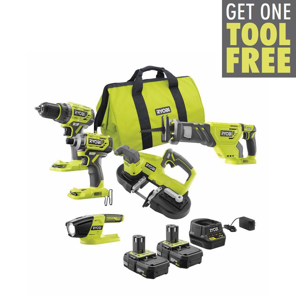 - Includes: (1) 18V ONE+ P252 Brushless Drill/Driver with bit, (1) P239 18V ONE+ Brushless Impact Driver with bit, (1) P518 18V ONE+ Lithium-Ion Brushless Cordless Reciprocating Saw with wood cutting blade, (1) P705 LED Light with integrated mounting hooks, (2) P190 18V ONE+ 2.0 Ah Compact Lithium-Ion Batteries, (1) P118B 18V Charger, a tool bag, Free (1) P590 18V ONE+ Portable Band Saw, (1) 32-7/8 in. 18 TPI blade, hex key, and operator's manual