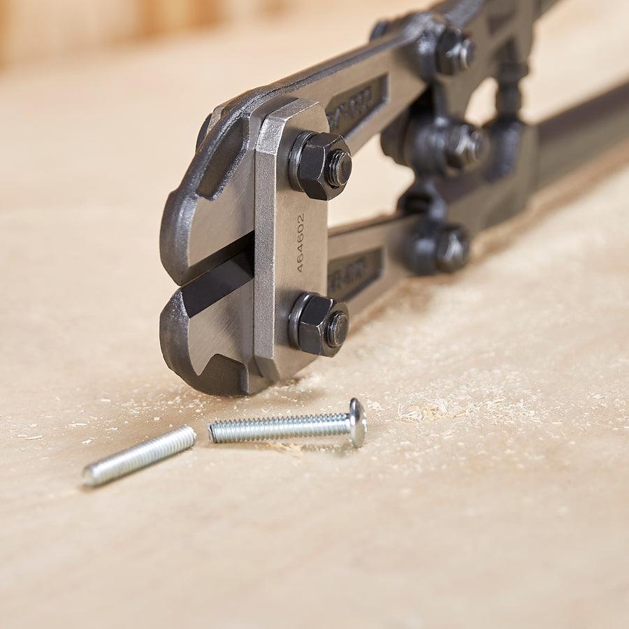 Ideal for cutting rods, bolts, concrete form ties and fencing wire Heat-treated chrome molybdenum steel jaws Ergonomic bi-material anti-slip grips Adjusting screws allow for easy and perfect alignment of jaws